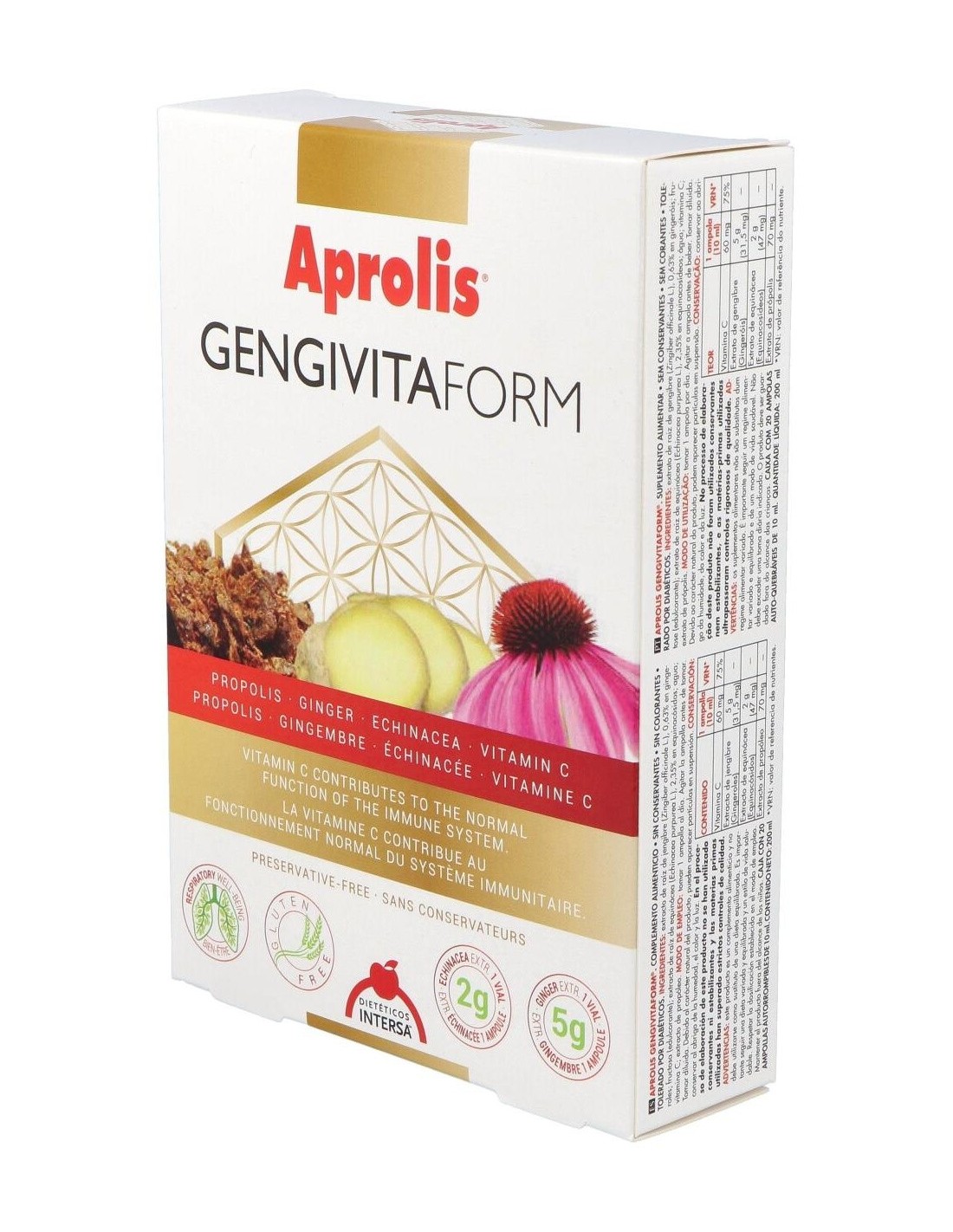 Estas ampollas cuentan con una combinación de propóleo, jengibre, vitamina C y esquinacea. Una ampolla contiene 5 gramos de extracto de rizoma de jengibre y 2 gramos de extracto de equinácea. El rizoma se ha utilizado desde siempre en la medicina china para brindar calor al pulmón en momentos de resfriado. Este producto de Intersa apoya al funcionamiento correcto del sistema inmune debido a que posee vitamina C. También la presentación viene en una caja de 20 ampollas de 10ml.