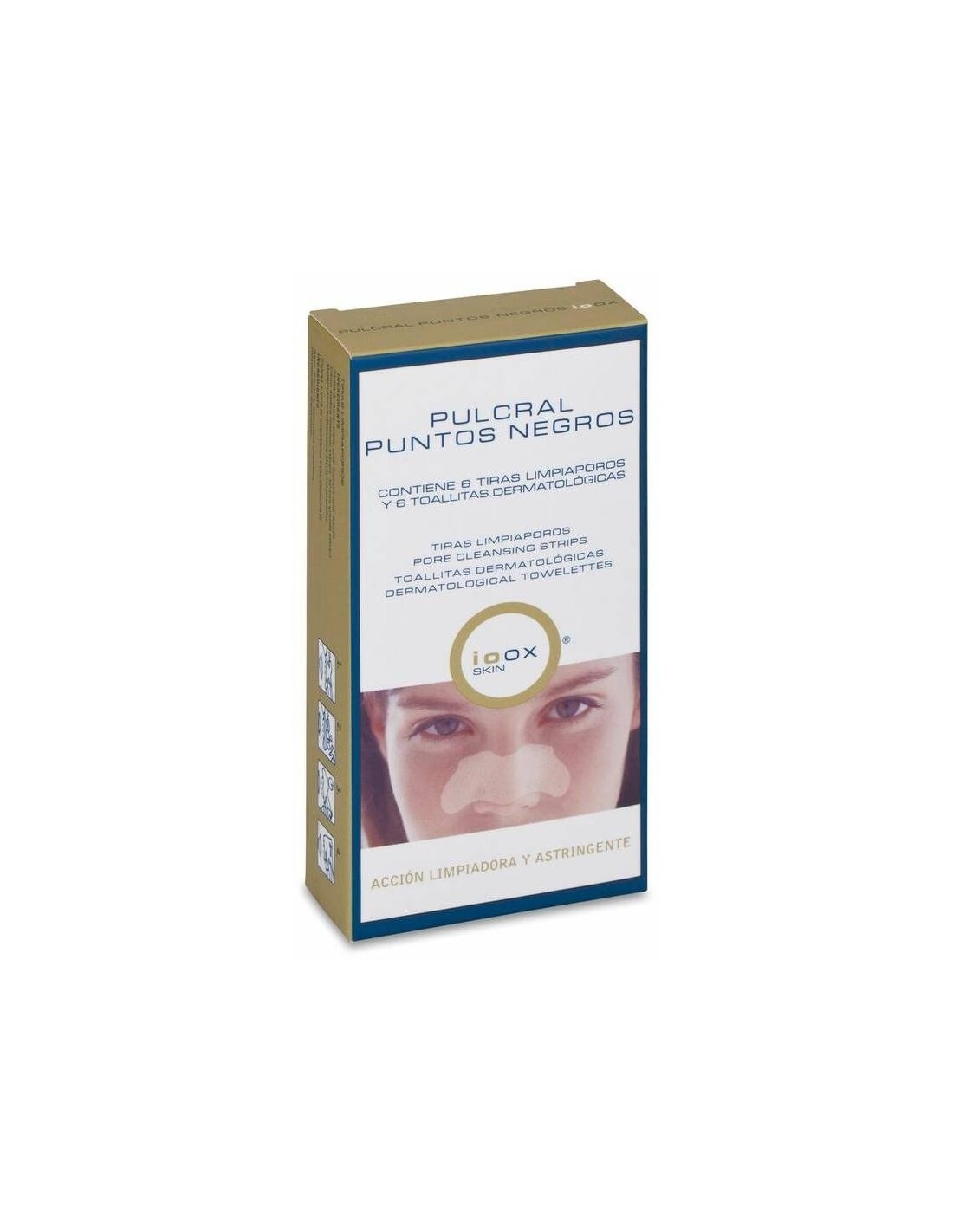 ioox® Pulcral Puntos Negros es un tratamiento combinado de una tira limpiadora con una toallita dermatológica. El uso conjunto de ambos productos te ayudará a eliminar los puntos negros de tu nariz y de tu rostro.