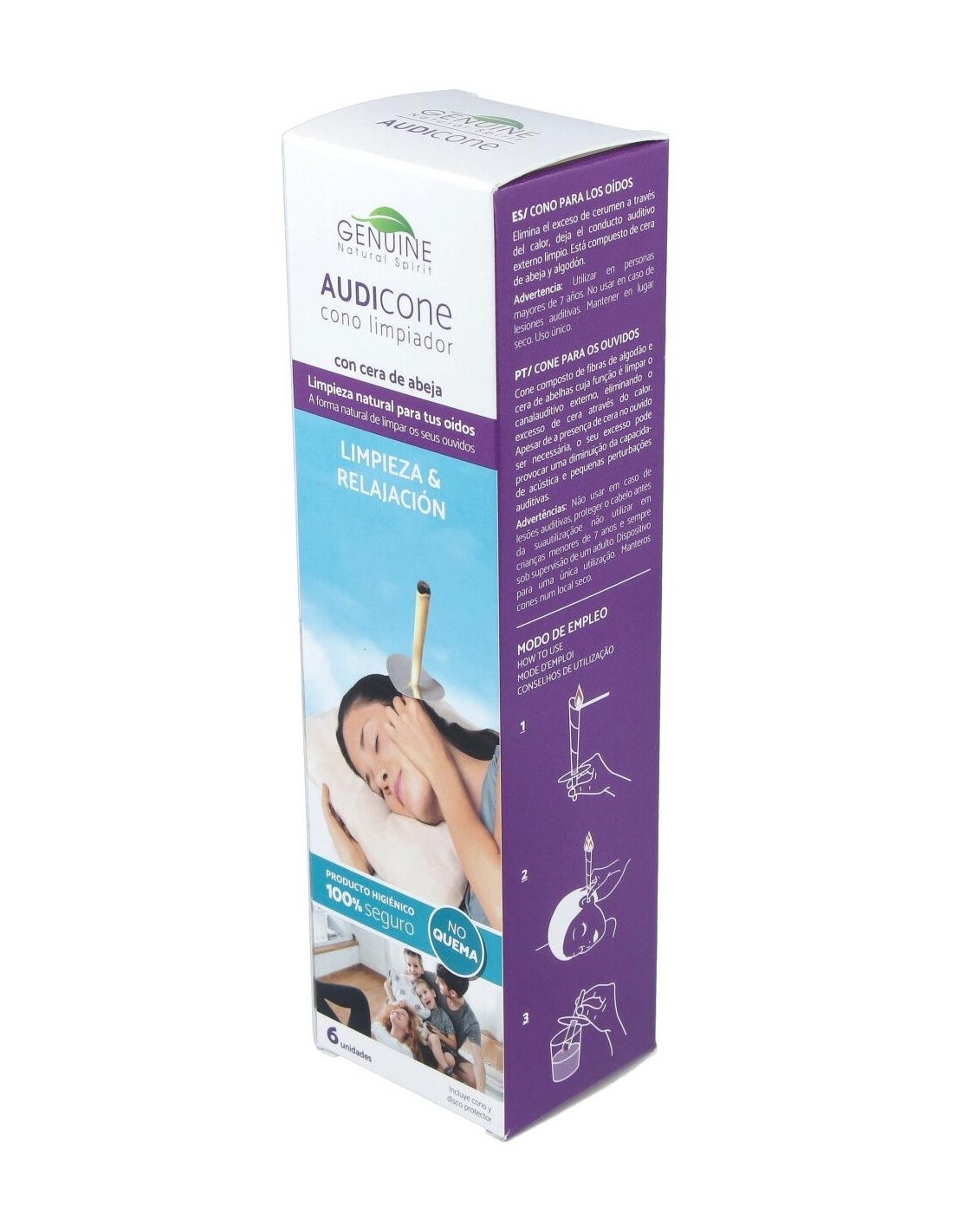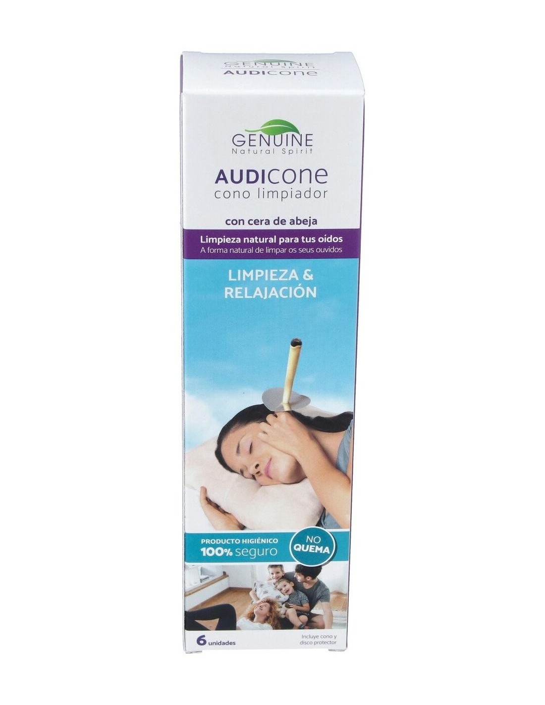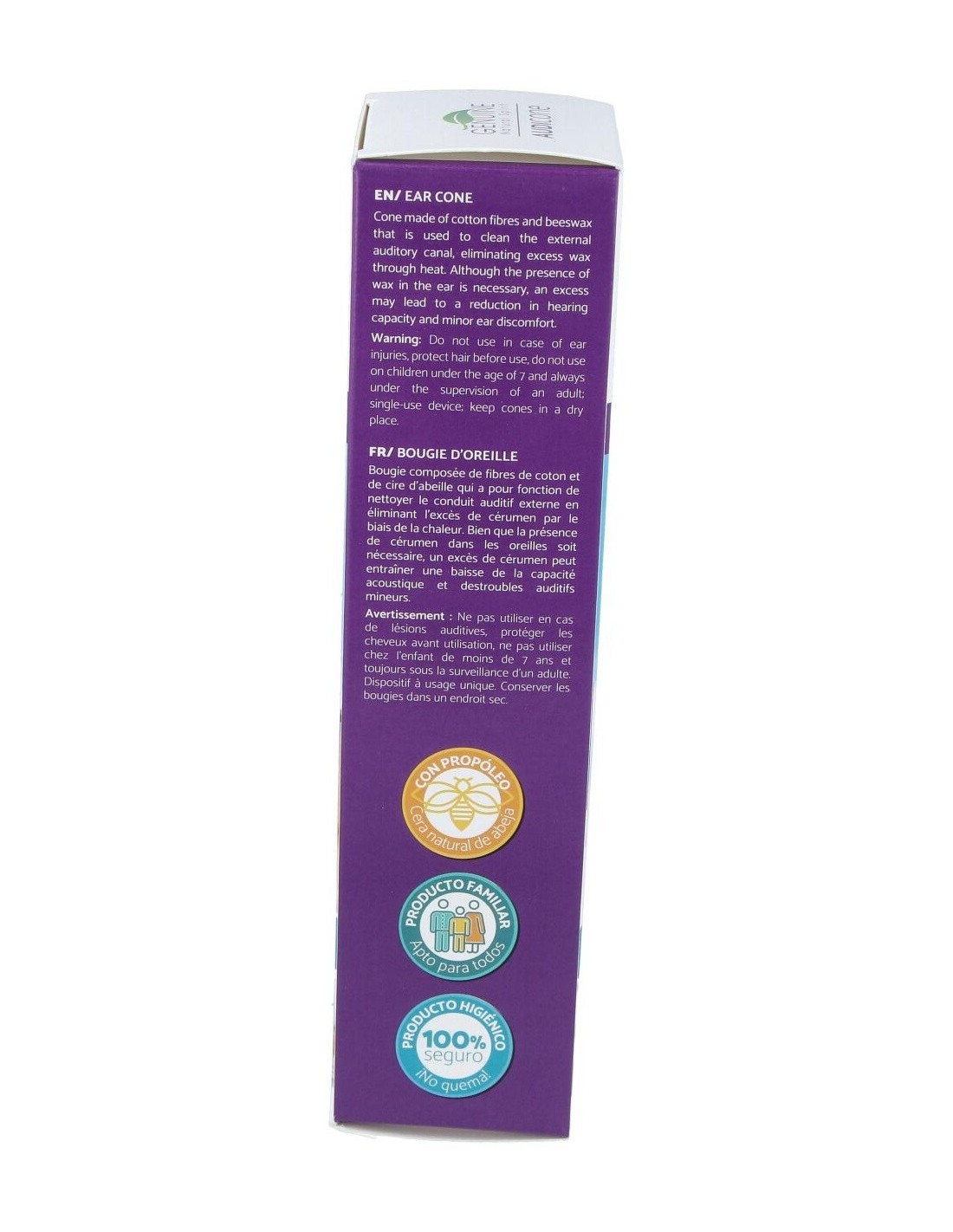 Realizado con tejido natural y cera, contribuye a la eliminación de la cera de los oídos y restablece el equilibrio de la presión auricular evitando la desagradable sensación de oídos tapados.