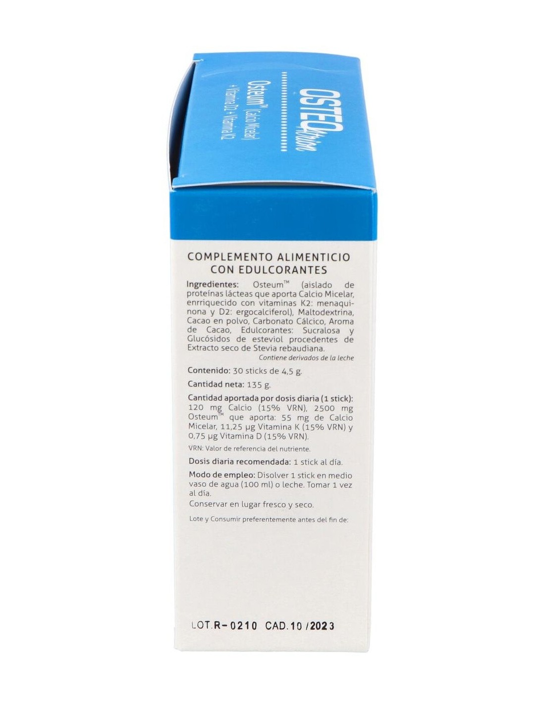 120 mg Calcio, 2.500 mg Osteum que aporta: 55 mg de Calcio Micelar, 11,25