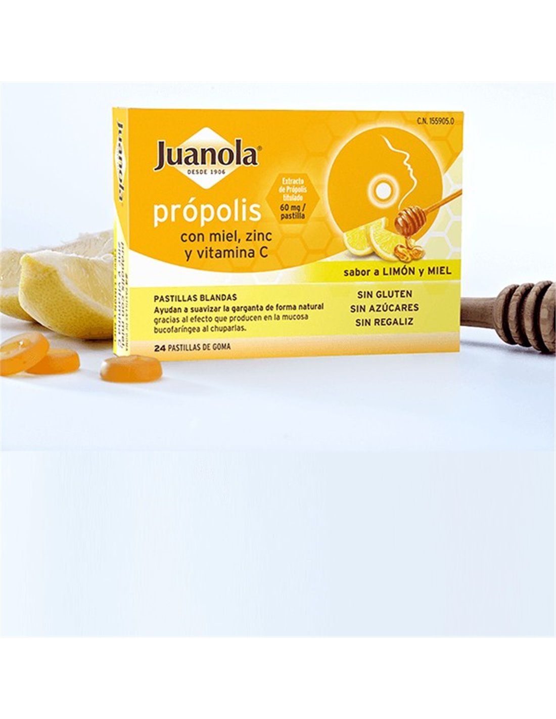 JUANOLAPastillas blandas que combinan el efecto del extracto de própolis y del extracto de Hedera helix, la miel, el zinc y la vitamina C para suavizar la garganta gracias al efecto que producen las pastillas en la mucosa bucofaríngea al chuparlas. La vitamina C y el zinc contribuyen a mantener el sistema inmune en condiciones normales. Con sabor a miel.