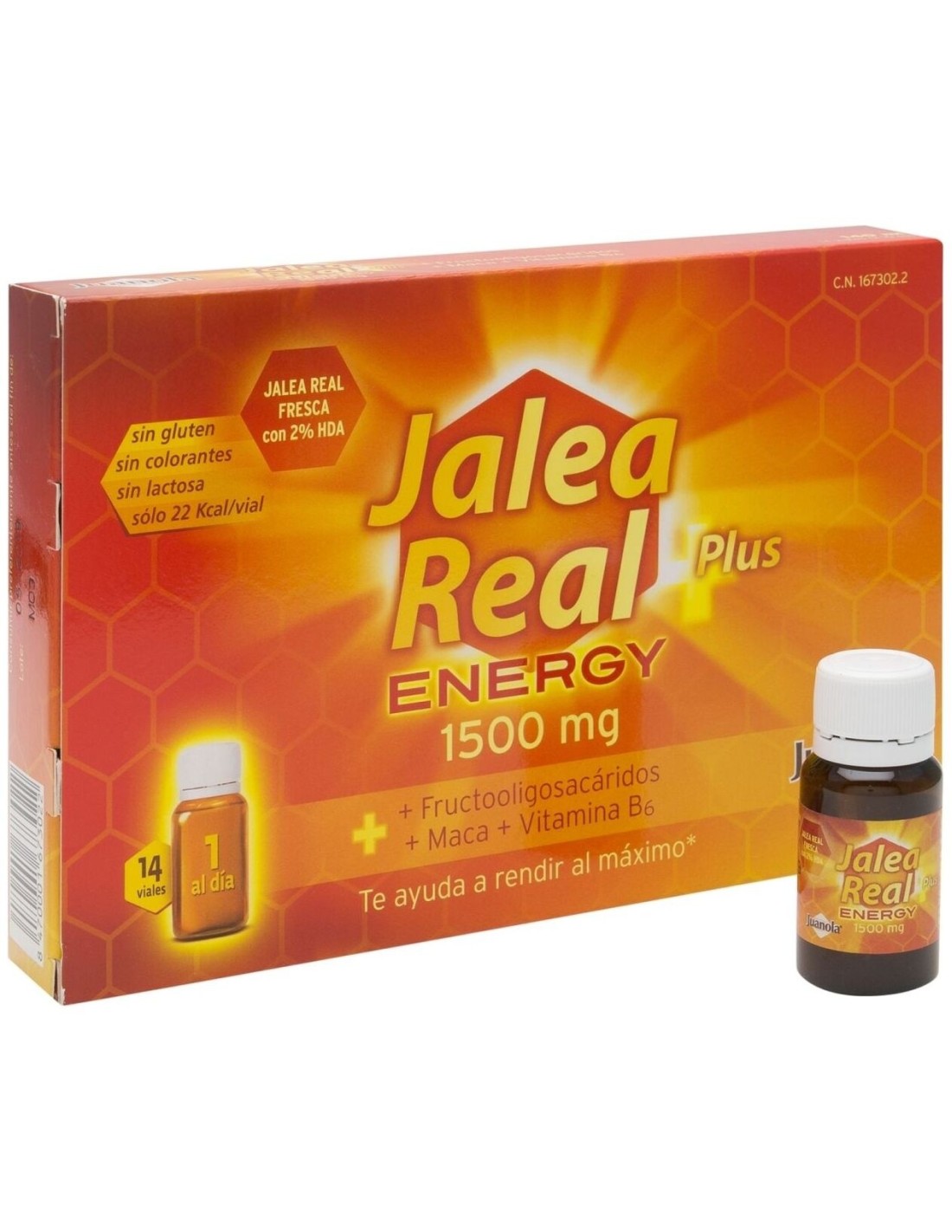 JUANOLAJuanola Jalea Real Energy es un complemento alimenticio con jalea real fresca, extracto seco de maca y vitamina B6, en formato sticks unidosis. La B6 contribuye al metabolismo energético normal, al funcionamiento normal del sistema inmunitario y ayuda a disminuir el cansancio y la fatiga. Además, contiene maca que favorece el rendimiento físico y mental, aportando energía y manteniendo la vitalidad del organismo.