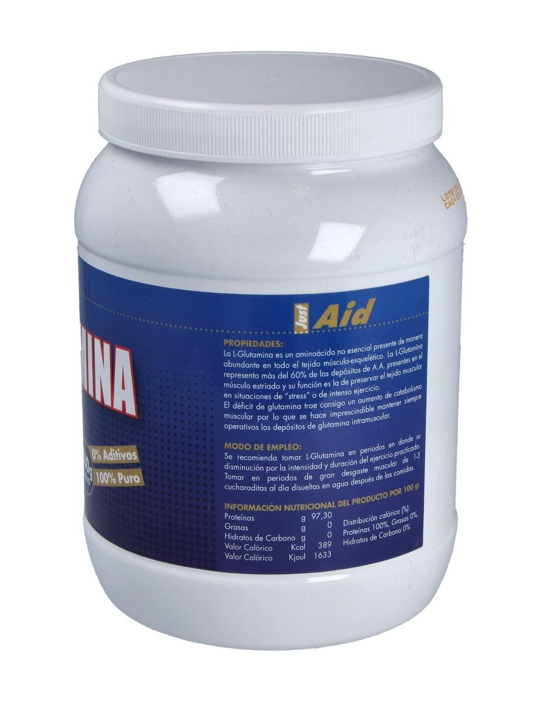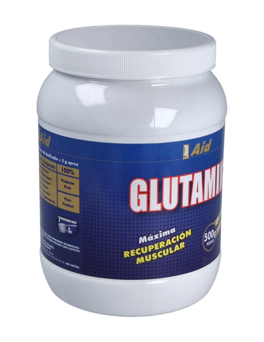 Complemento alimenticio en forma de polvos solubles, elaborado a base de L-glutamina, que ayuda a una mejor recuperación muscular después del entrenamiento. La glutamina es un aminoácido no esencial, y está involucrado en un gran número de procesos metabólicos, y suele ser útil en situaciones como entrenamientos extenuantes o prolongados, o para la práctica de algún deporte con mucho desgaste, como pueden ser el triatlón, escalada, ciclismo o atletismo.