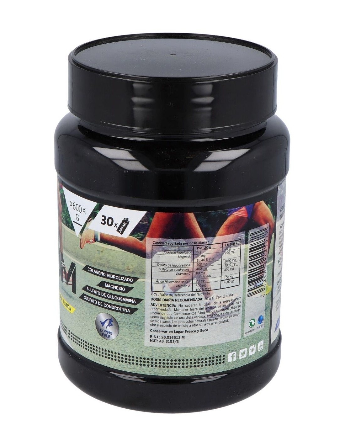 Maltodextrina: Colágeno Hidrolizado: Dextrosa: Aroma de Limón: Citrato de Magnesio: Sulfato de glucosalina: Sulfato de Condroitina: Vitamina C (Ác. L-