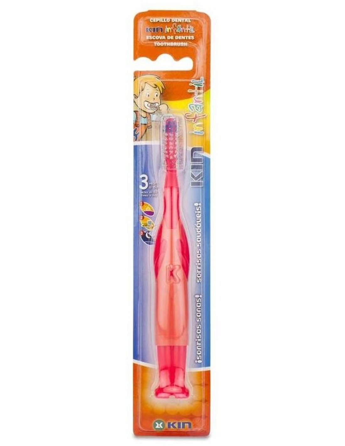 KINCepillo dental infantil, con cerdas sintéticas de dureza media y mango ergonómico Contribuye a limpiar restos de comida y placa bacteriana de los dientes. Favorece la protección del esmalte dental con una forma especial para higienizar la línea de las encías sin desgastar los dientes.