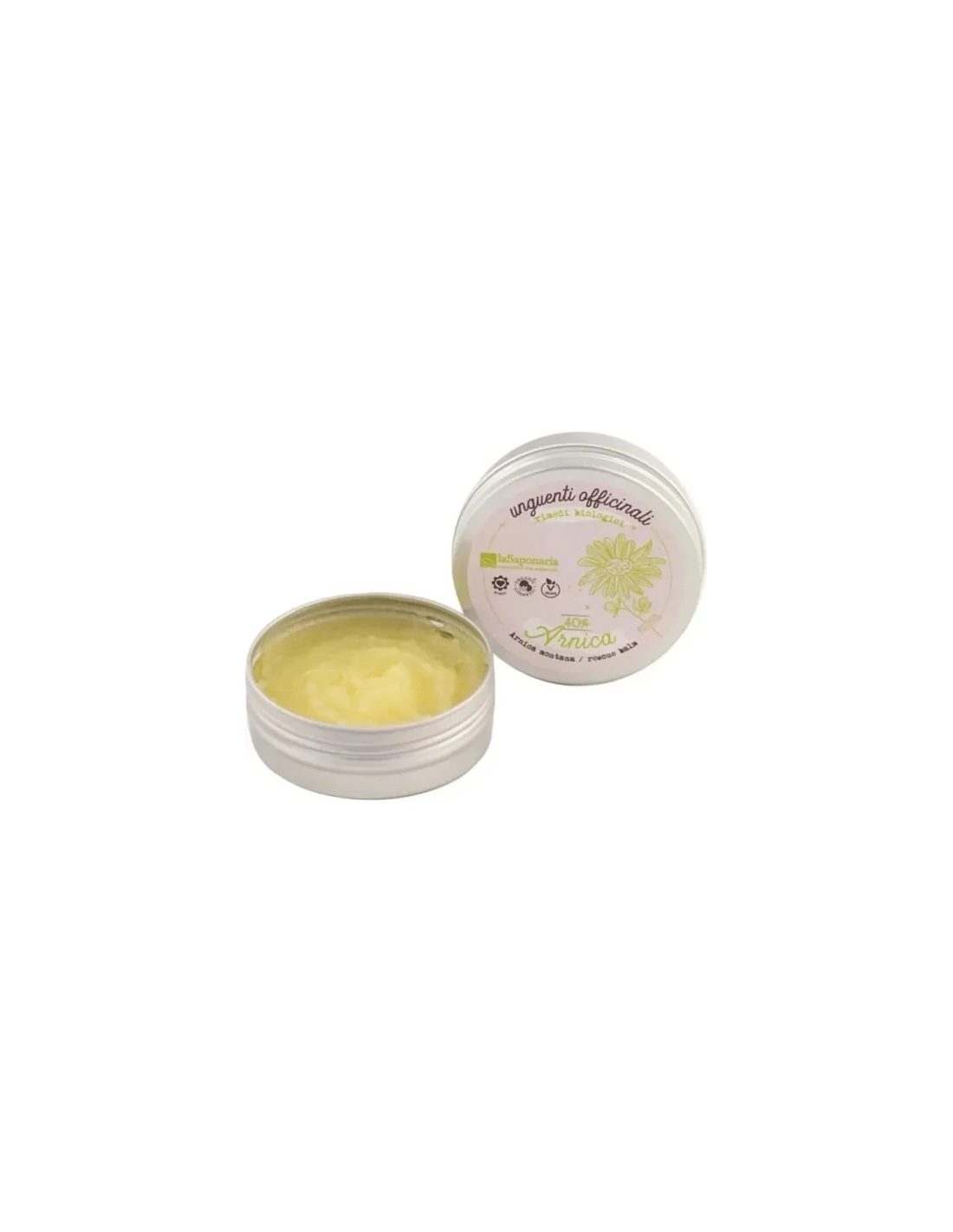 LA SAPONARIAEste ungüento se elabora siguiendo una receta tradicional, únicamente con ingredientes naturales y de origen vegetal. Contiene un 40% de fitoextracto de Árnica cuyo efecto beneficioso se ve potenciado por la acción sinérgica de los aceites esenciales puros de enebro, naranja amarga y eucalipto que contiene. 100% vegano.