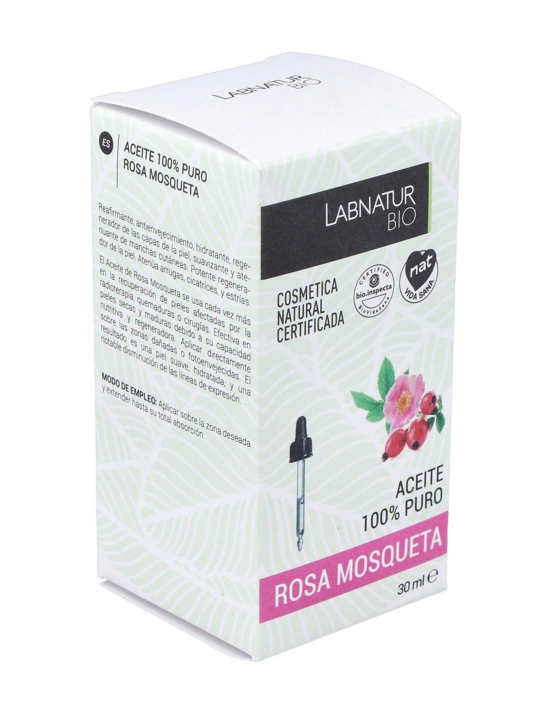 LABNATUR BIOAceite de rosa mosqueta 100% puro y procedente de la agricultura ecológica certificada. El aceite de rosa mosqueta contiene propiedades hidratantes, revitalizantes y regeneradoras, que favorecen la luminosidad del cutis, ayudan a disminuir la hinchazón de ojos y a la reducción de arrugas.