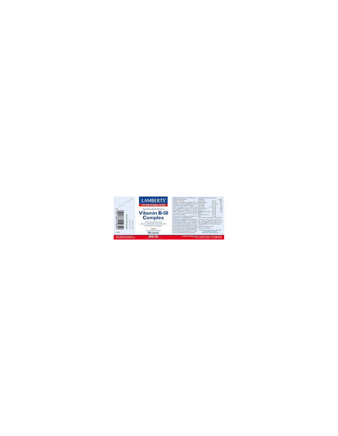 Pack 2 Uds. Complejo de Vitaminas B-50 120 Tabs.  de Lamberts