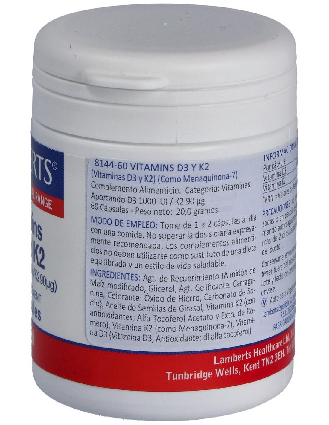 Vitamina D3 (1000 UI) + K2 (como MK-7) (90 µg) de Lamberts