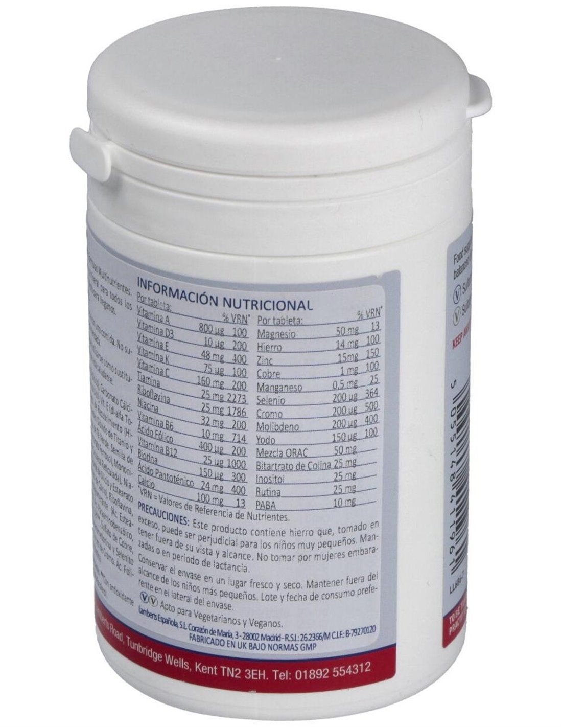 Complemento alimenticio rico en vitaminas y minerales. Aporta gran cantidad de vitaminas y minerales esenciales para el día a día de cualquier persona adulta. Apto para veganos. Todas las vitaminas están presentes en proporciones relevantes, haciéndolo un producto útil cuando se requiere un complejo B de media/alta potencia, junto a los antioxidantes beta caroteno y las vitaminas C y E.
