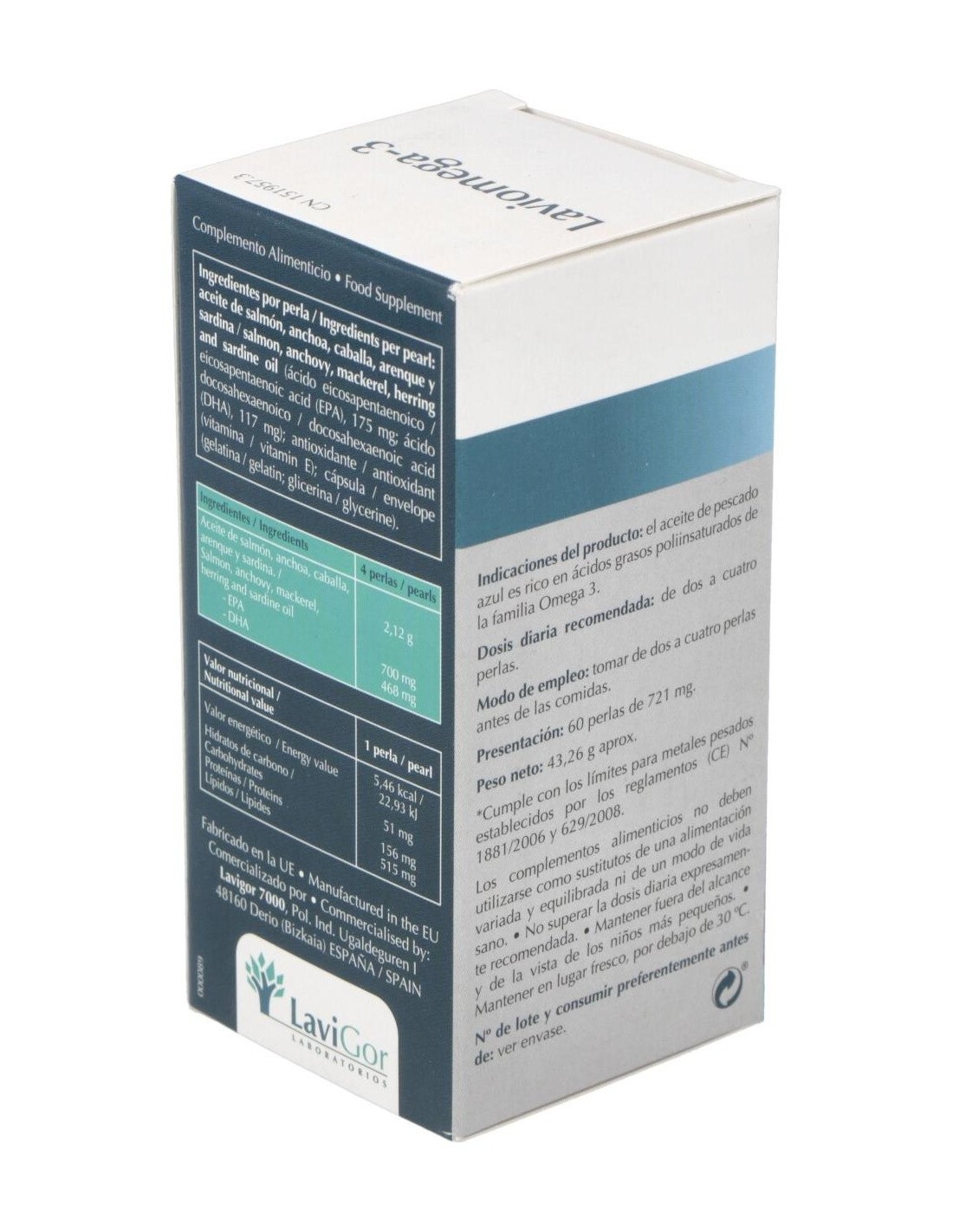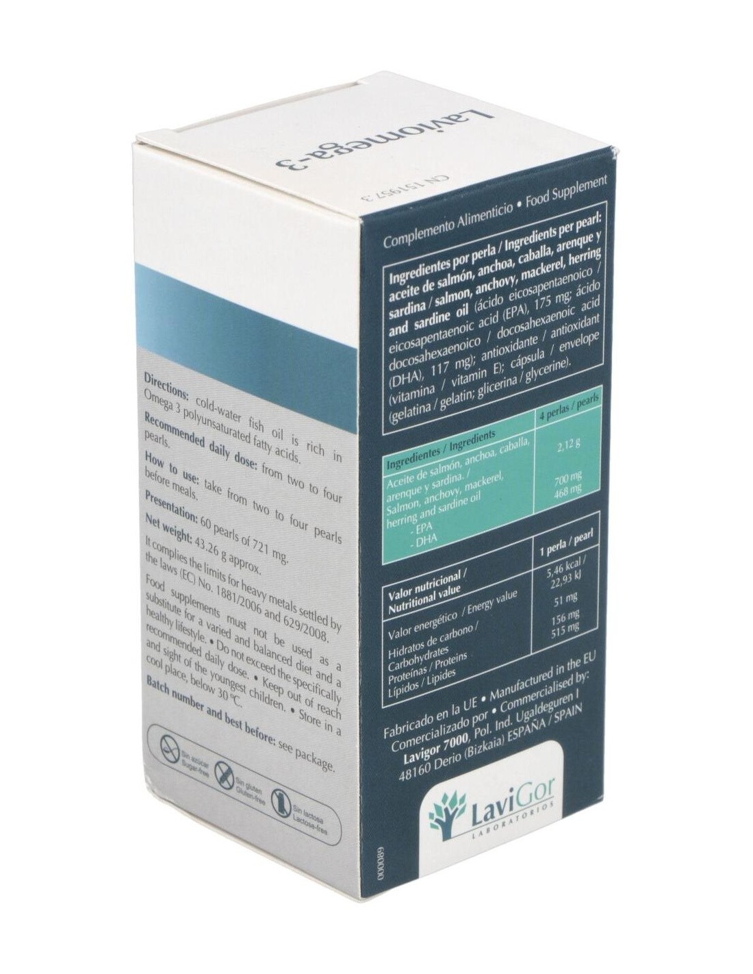 LAVIGORComplemento alimenticio a base de aceite de pescado azul, rico en ácidos grasos poliinsaturados Omega 3. LAVIOMEGA 3 60perlas de LAVIGOR Complemento alimenticio a base de aceite de pescado azul, rico en ácidos grasos poliinsaturados Omega 3.