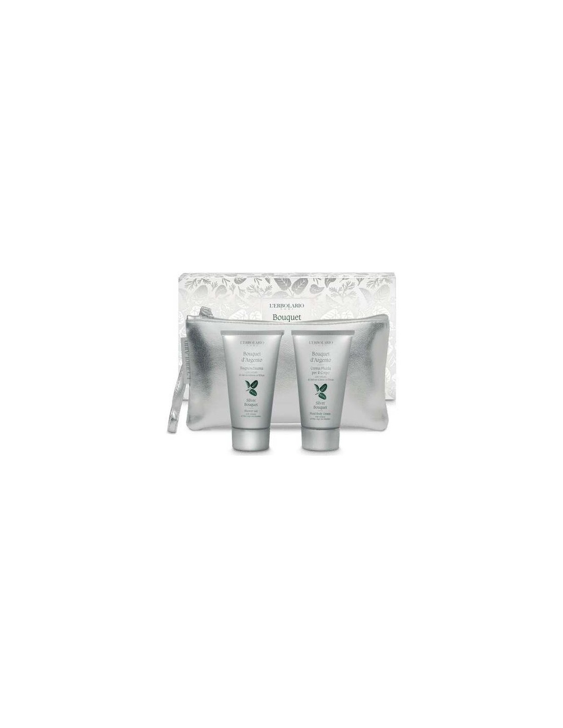 L'Erbolario Bouquet d'Argento Gel + Crema es un pack con aroma a flores y madera compuesto por un neceser de color plata, que contiene un Gel de Baño 75ml + y una Crema hidratante corporal perfumada 75ml.