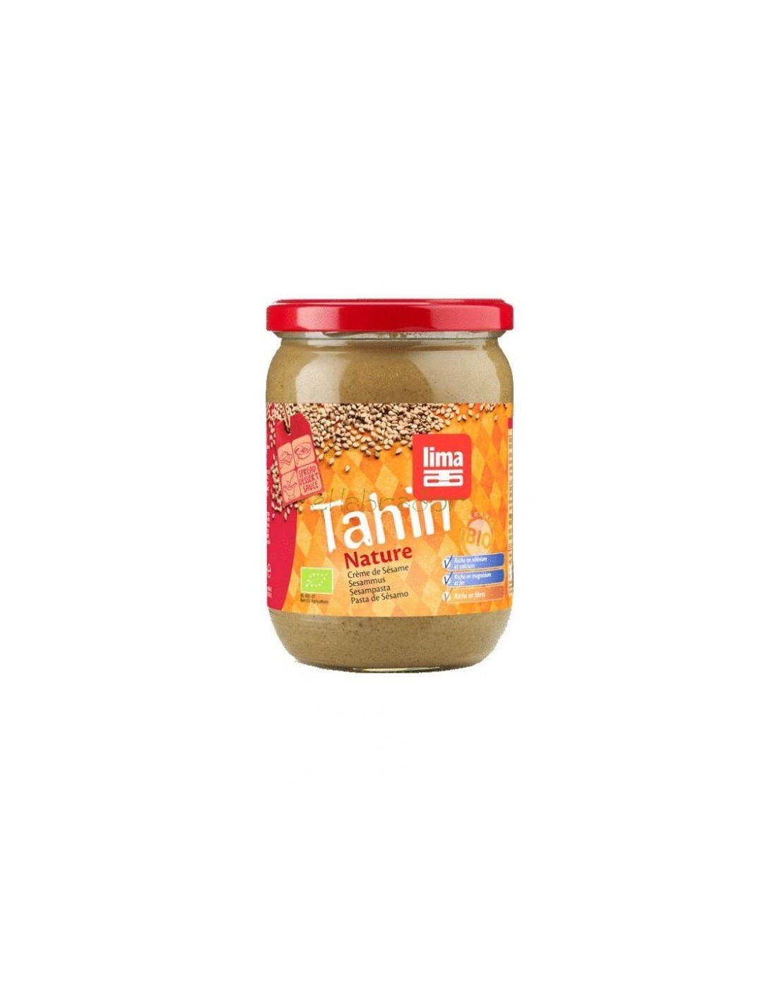 Crema de sésamo de alto valor nutricional. Es una fuente de proteínas, y además tiene un alto contenido de fósforo, calcio, magnesio, hierro. Es rica en selenio y es una fuente de potasio. Se utiliza para untar directamente en pan o como ingrediente para otras recetas como el hummus, el puré de berenjenas o el falafel. Este tahin procede de agricultura ecológica.