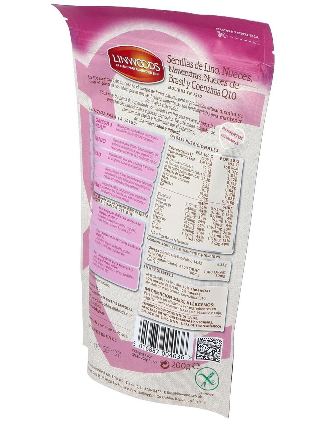 Semillas De Lino Con Nueces Almendras Q10 200Gr. de Linwoods