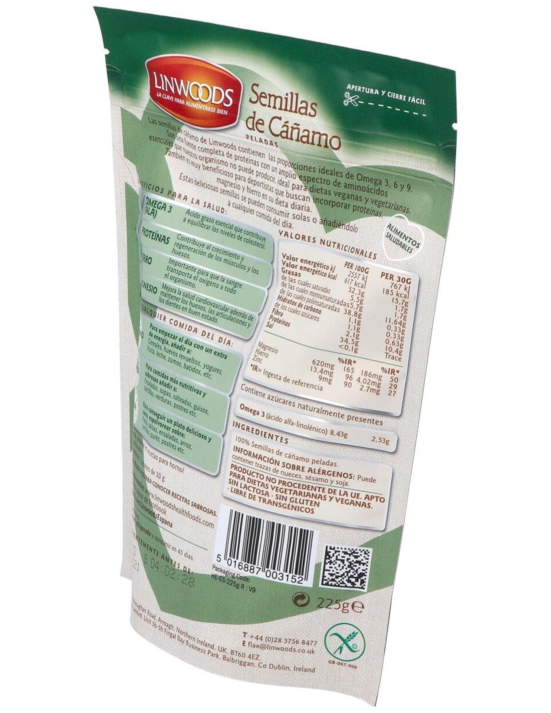 Semillas De Cañamo Peladas 225Gr. de Linwoods