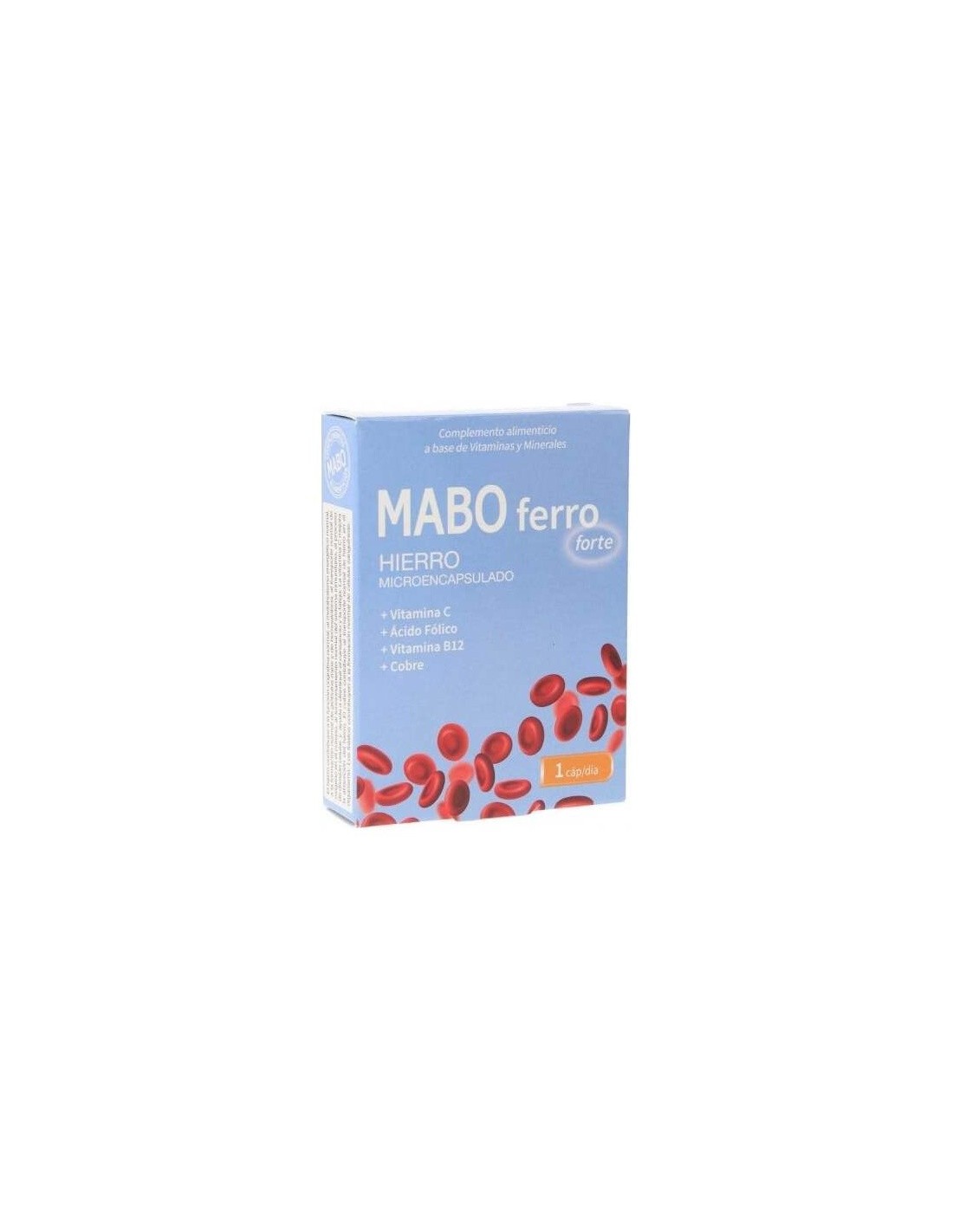 MABOComplemento alimenticio a base de Hierro microencapsulado (pirofosfato férrico). Está enriquecido con Ácido Fólico, Vitamina B12, Cobre y Vitamina C. La Vitamina C favorece la absorción del hierro. La Vitamina B12 contribuye a la formación normal de glóbulos rojos. El Cobre ayuda en el transporte normal del hierro. El Ácido Fólico contribuye a la formación de los glóbulos rojos.
