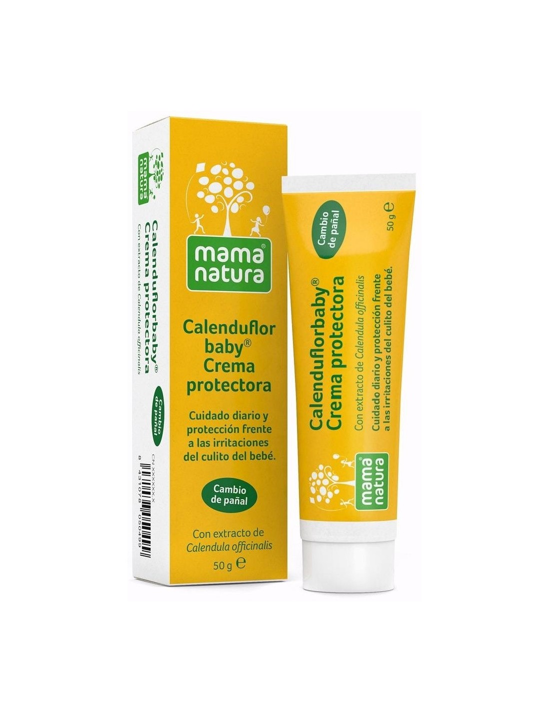 MAMA NATURACrema de cuidado diario de las irritaciones de la zona del pañal. Elaborada con extracto de caléndula, ayuda a proteger y recuperar la piel del bebé de la agresión producida por el pañal.