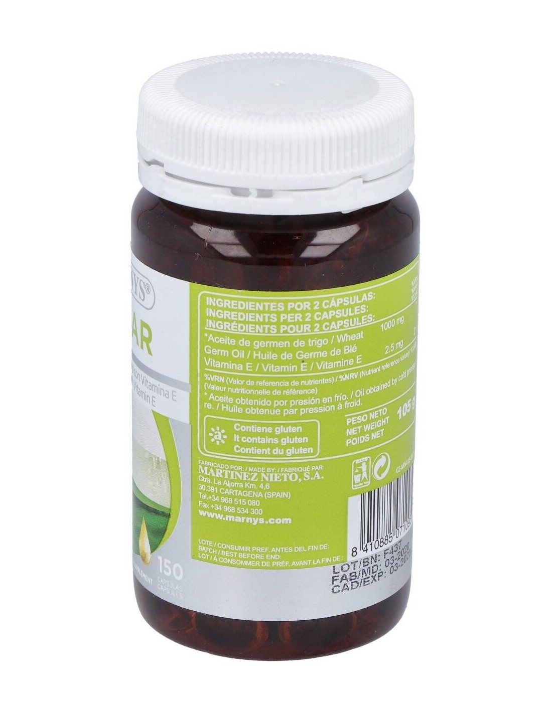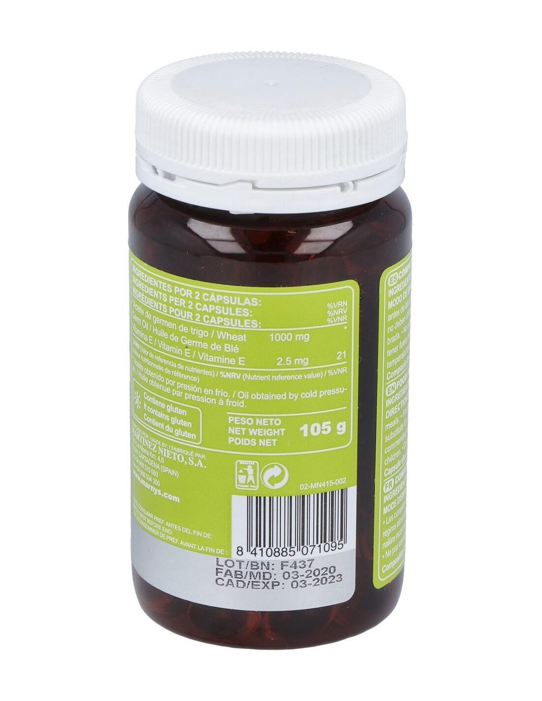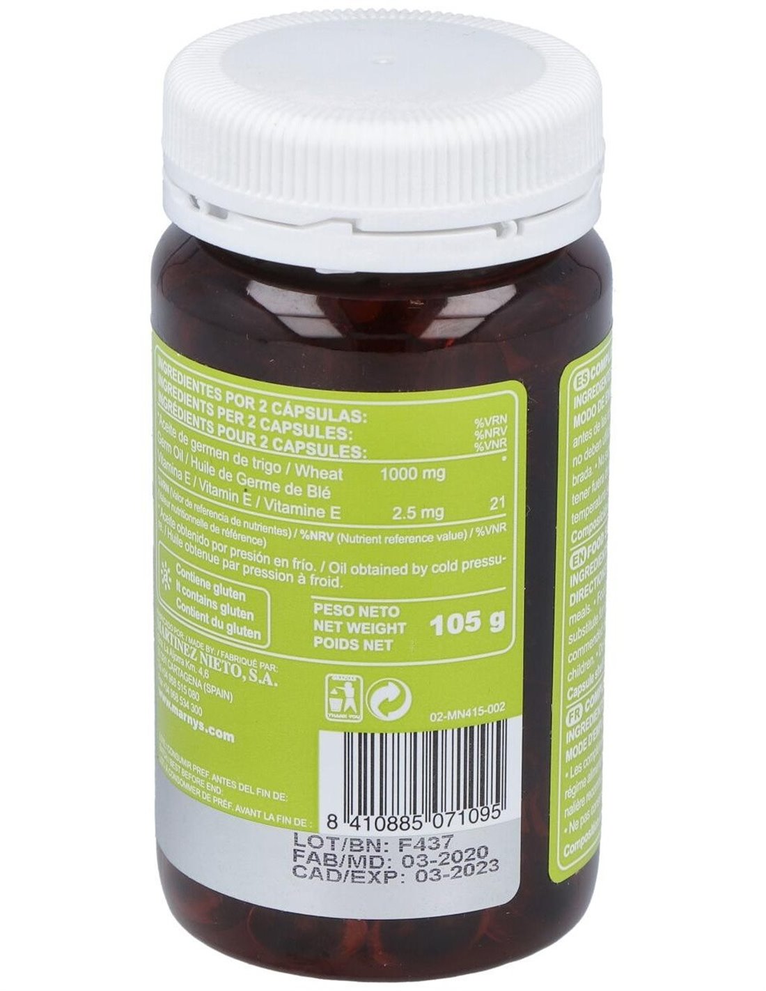 Aceite de germen de trigo* prensado en frío, Vitamina E.