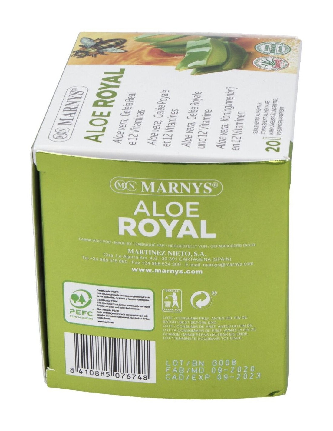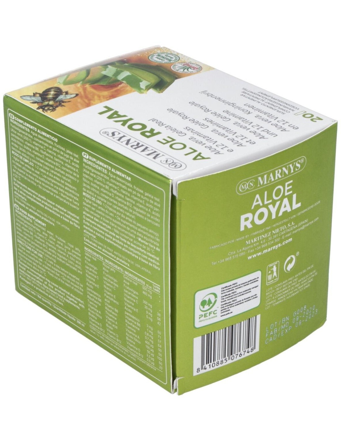 Agua desionizada, fructosa, jalea real, jugo concentrado de hoja de aloe vera (200:1) (Aloe barbadensis), fructoligosacáridos, vitamina C, niacina, vitamina E, ácido pantoténico, vitamina B6, riboflavina, tiamina, vitamina A, ácido fólico, biotina, vitamina D, vitamina B12, corrector de la acidez (ácido cítrico), conservadores (sorbato potásico, benzoato sódico) y colorante (color caramelo natural).