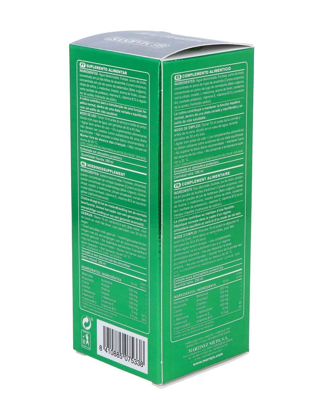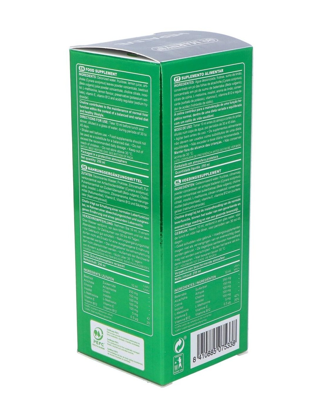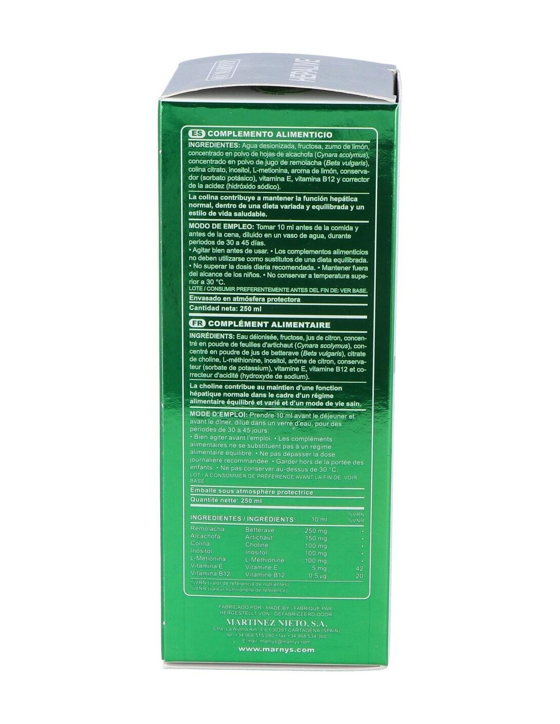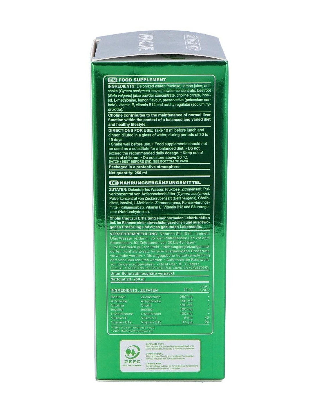 Formulado con extracto de alcachofa y remolacha, zumo de limón, aminoácido metionina, vitamina E y vitamina B12. Cuenta con propiedades détox, ya que ayudan al mantenimiento del funcionamiento hepático de forma adecuada. La alcachofa además de beneficiar la función hepática, también ayuda al aparato gastrointestinal. Su contenido de vitamina E ayuda en la protección celular del daño oxidativo y la remolacha ideal para una dieta saludable.