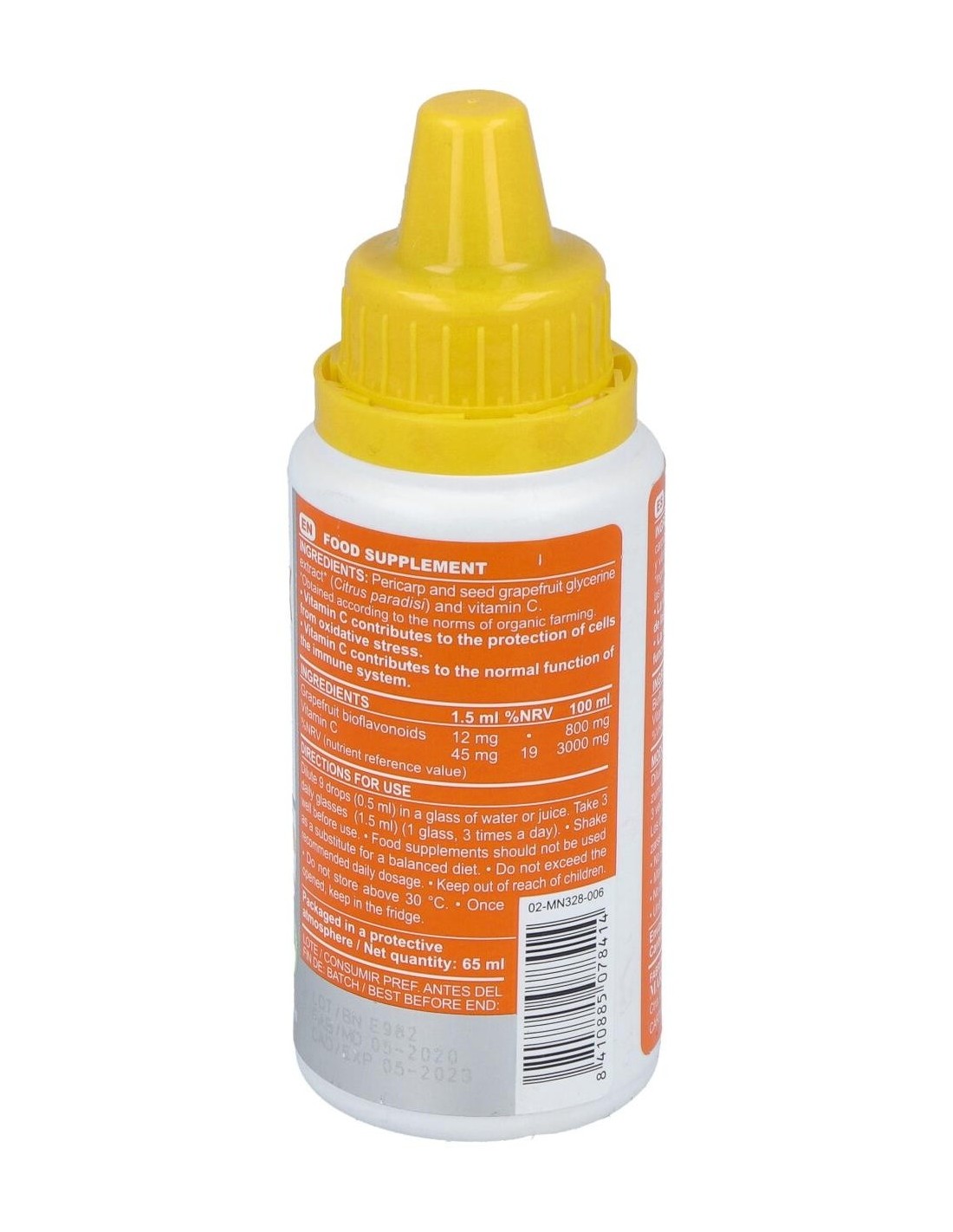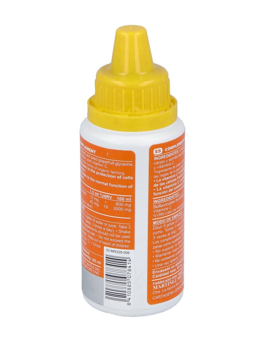Concentrado de pomelo líquido de cultivo ecológico certificado, con elevado contenido en bioflavonoides y fuente de vitamina C. La vitamina C contribuye al normal funcionamiento del sistema inmune, así como a la protección celular del daño oxidativo.