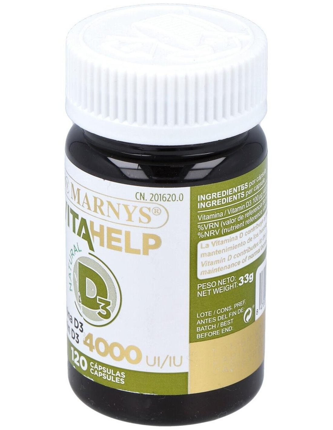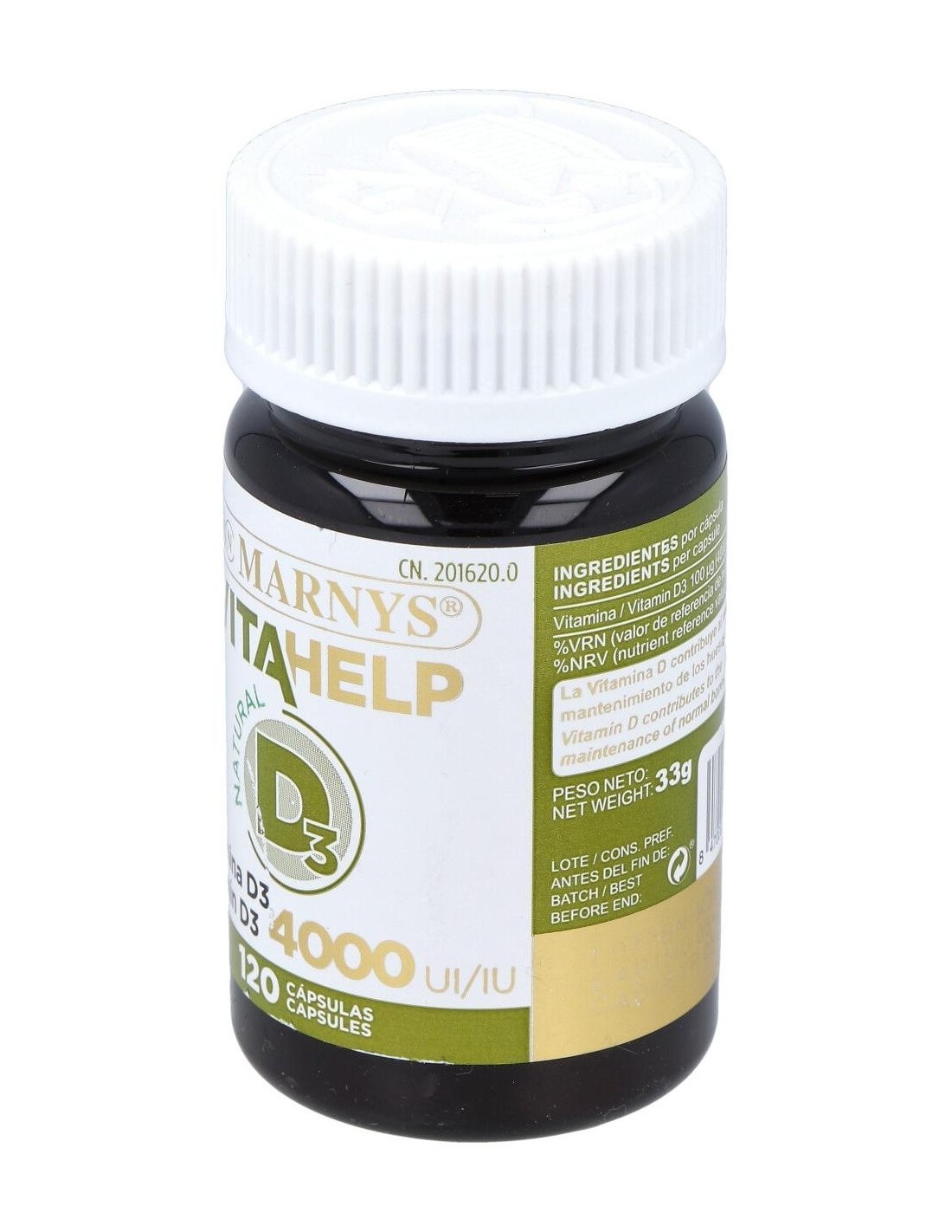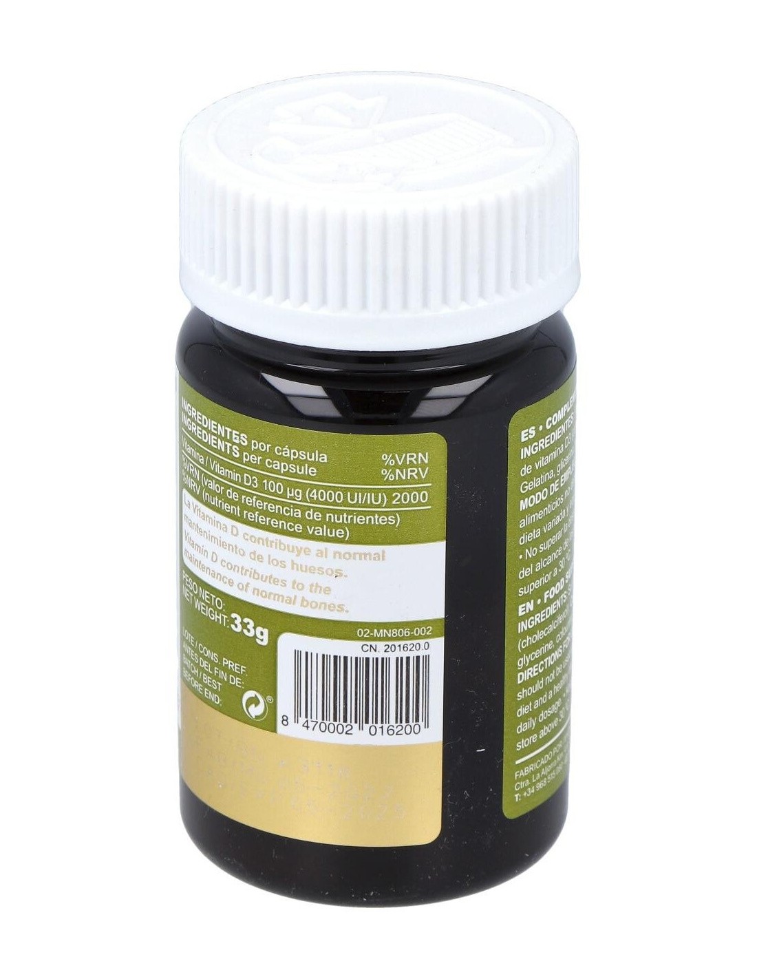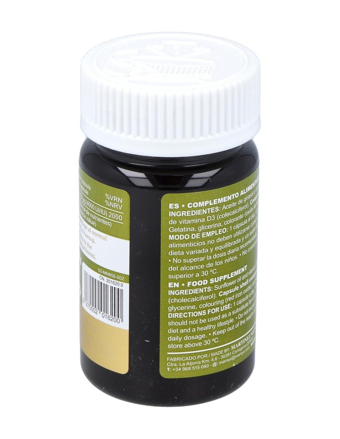 Complemento alimenticio con base de aceite de oliva y un contenido de 4000 UI de vitamina D en su forma D3 (colecalciferol). Presentación de 120 cápsulas. Favorece el normal funcionamiento del sistema inmune, la correcta absorción del calcio y un adecuado desarrollo osteomuscular en adolescentes y adultos. Indicada para adultos y adolescentes a partir de los 12 años.