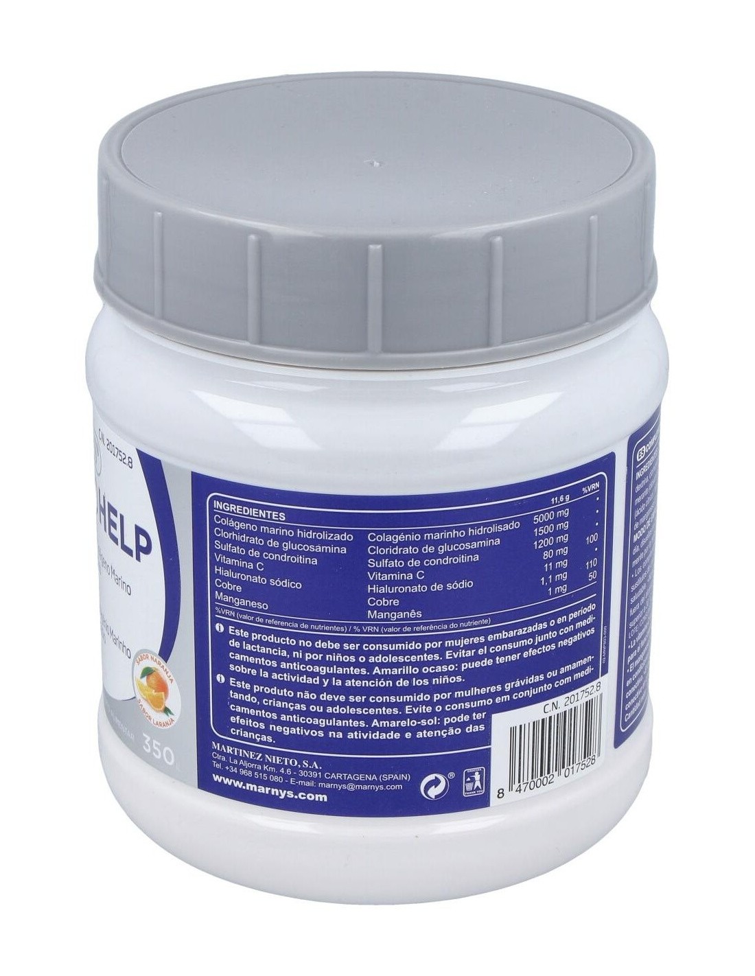 Marnys Condrohelp 350g es un complemento alimenticio en forma de polvos solubles que contribuyen a mantener y recuperar una mejor movilidad de cartílagos, tendones y ligamentos, favoreciendo una disminución del dolor durante la realización de ejercicios con impacto articular.