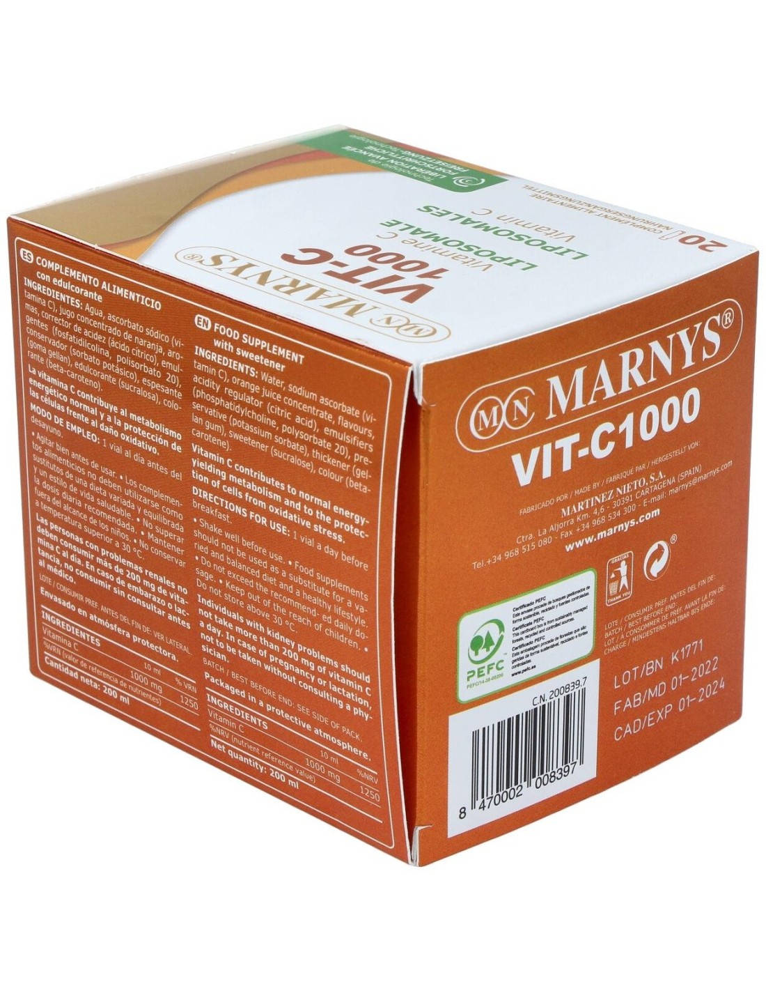 Vit C 1000 Vitamina C Liposomada 20 Ampollas de Marnys