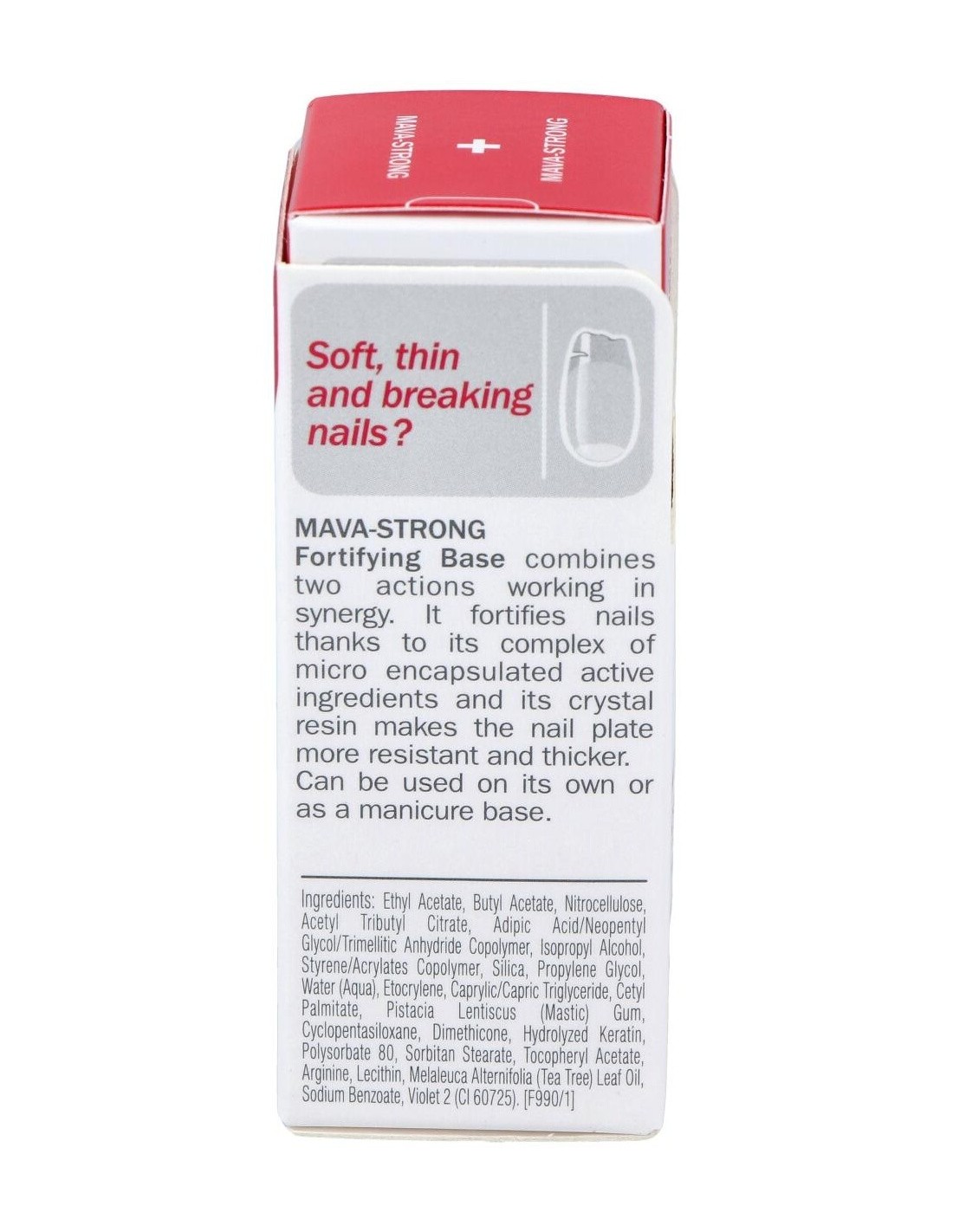 Retirar el esmalte y cualquier resto aceitoso que pueda tener la uña. Agitar el envase antes de usarlo para mezclar y difundir las microperlas dentro del producto. Aplicar MAVA-STRONG en las uñas limpias, mínimo dos veces por semana, en toda la superficie de la uña.