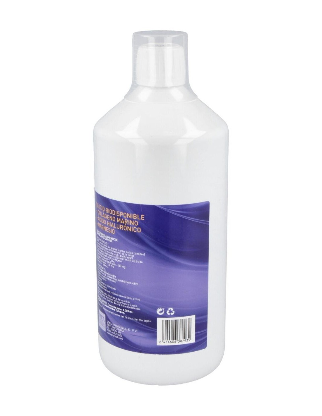 Silicio biodisponible (SI) (Ácido silícico estabilizado sobre colágeno marino hidrolizado), Colágeno marino hidrolizado, Ácido hialurónico, Magnesio, Agua desmineralizada y tratada con carbono activo. Excipiente c.s.p., Sabor frambuesa.