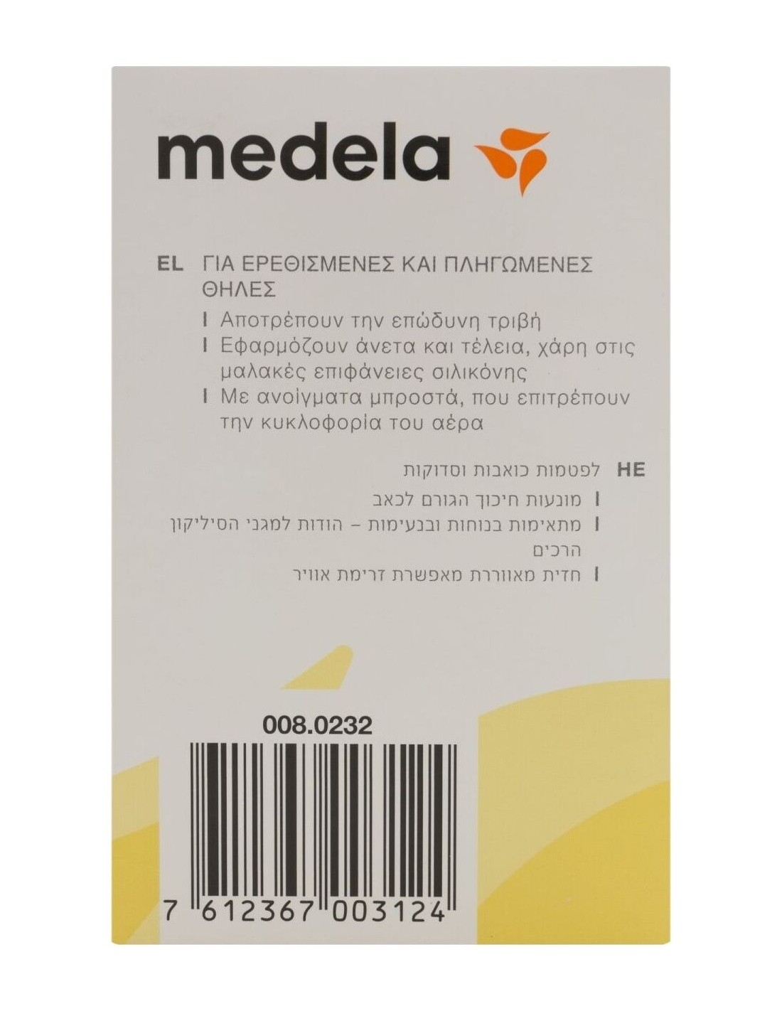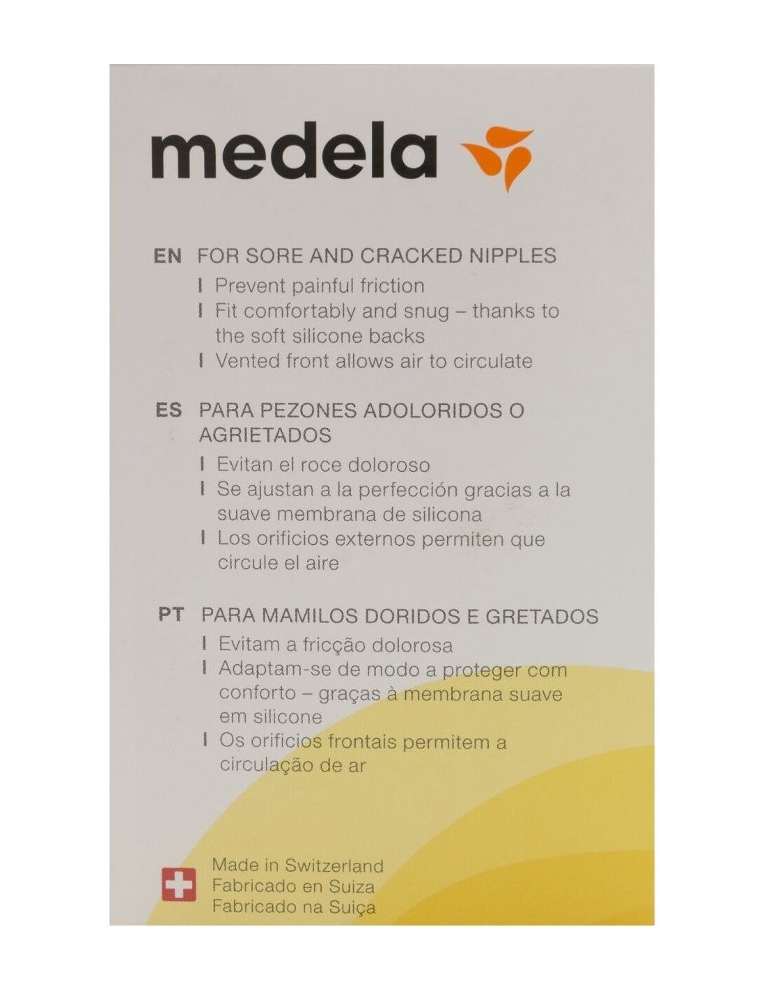 MEDELAProtectores de pezones de Medela que protegen y permiten que la piel se recupere al evitar el rozamiento con la ropa. Se ajustan de manera flexible a la forma del pecho.