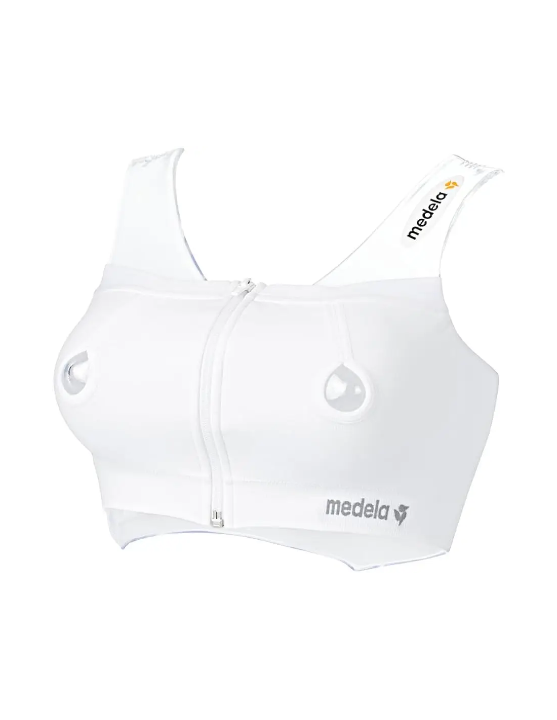MEDELAEl top de extracción Hands-free de Medela hace que la extracción de leche sea fácil y práctica. Tanto el extractor de leche como embudos quedan bien sujetados.