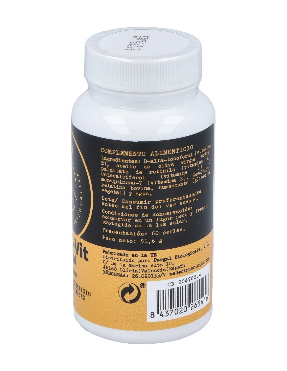 Cápsulas elaboradas a base de una combinación de vitaminas liposolubles como vitaminas A, D, E y K que contribuyen al correcto funcionamiento del sistema óseo y al metabolismo del hierro, el calcio y el fósforo. Además mantiene la piel, la visión y las mucosas en condiciones normales y protege las células contra el estrés oxidativo.