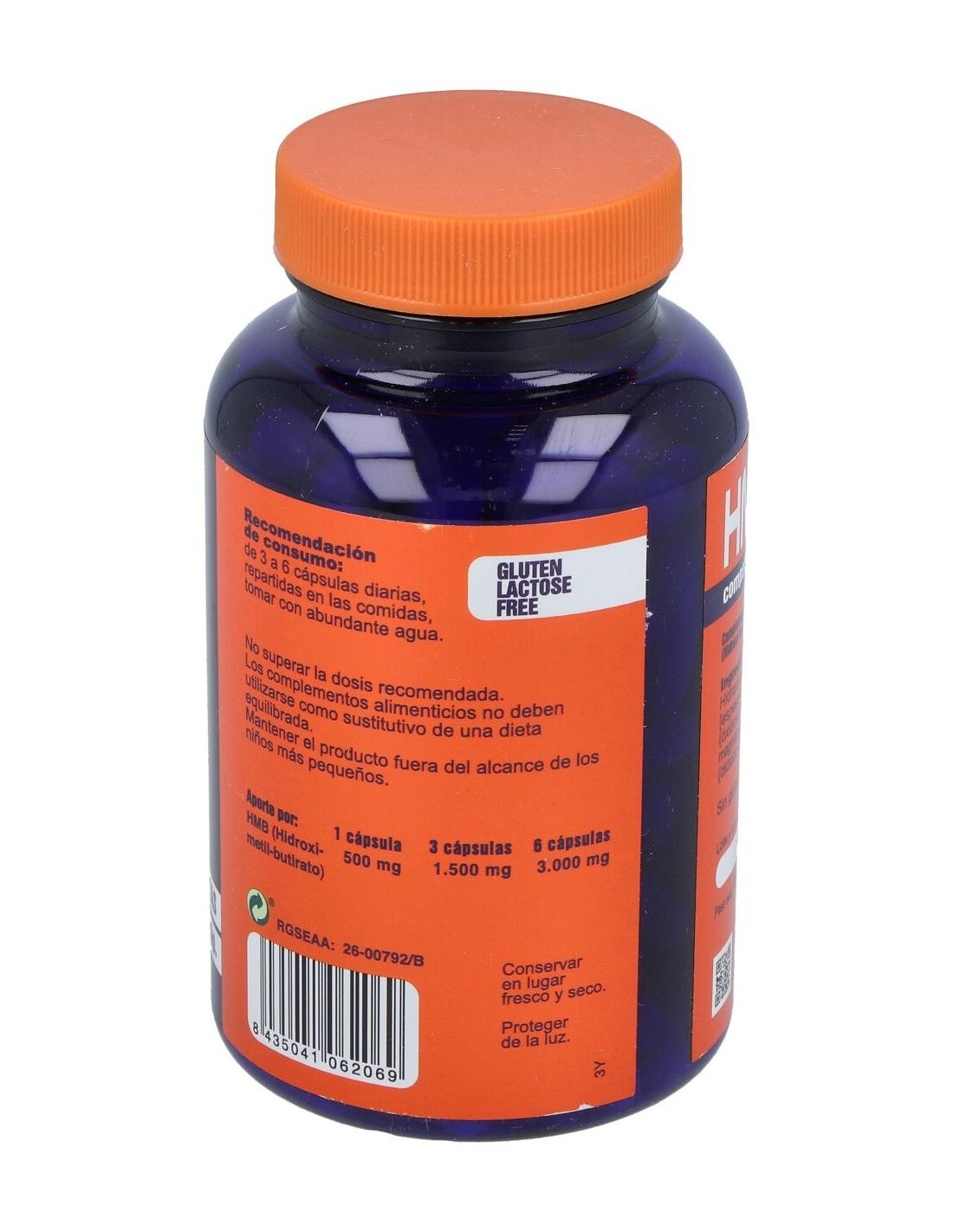 Cápsulas de HMB (beta-hidroxi-beta-metilbutirato) que poseen propiedades antioxidantes y favorecen la producción de masa muscular. Favorece la sintetización de las proteínas y promueve la pérdida de grasa siempre que se combine con una dieta equilibrada y ejercicio físico intenso.