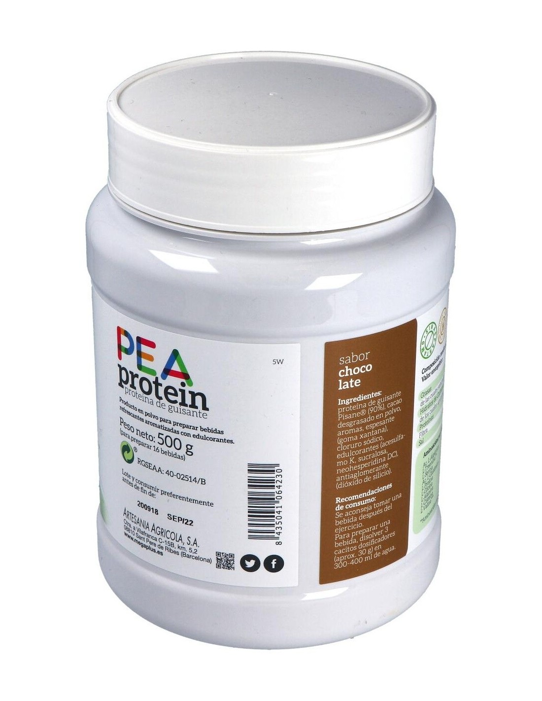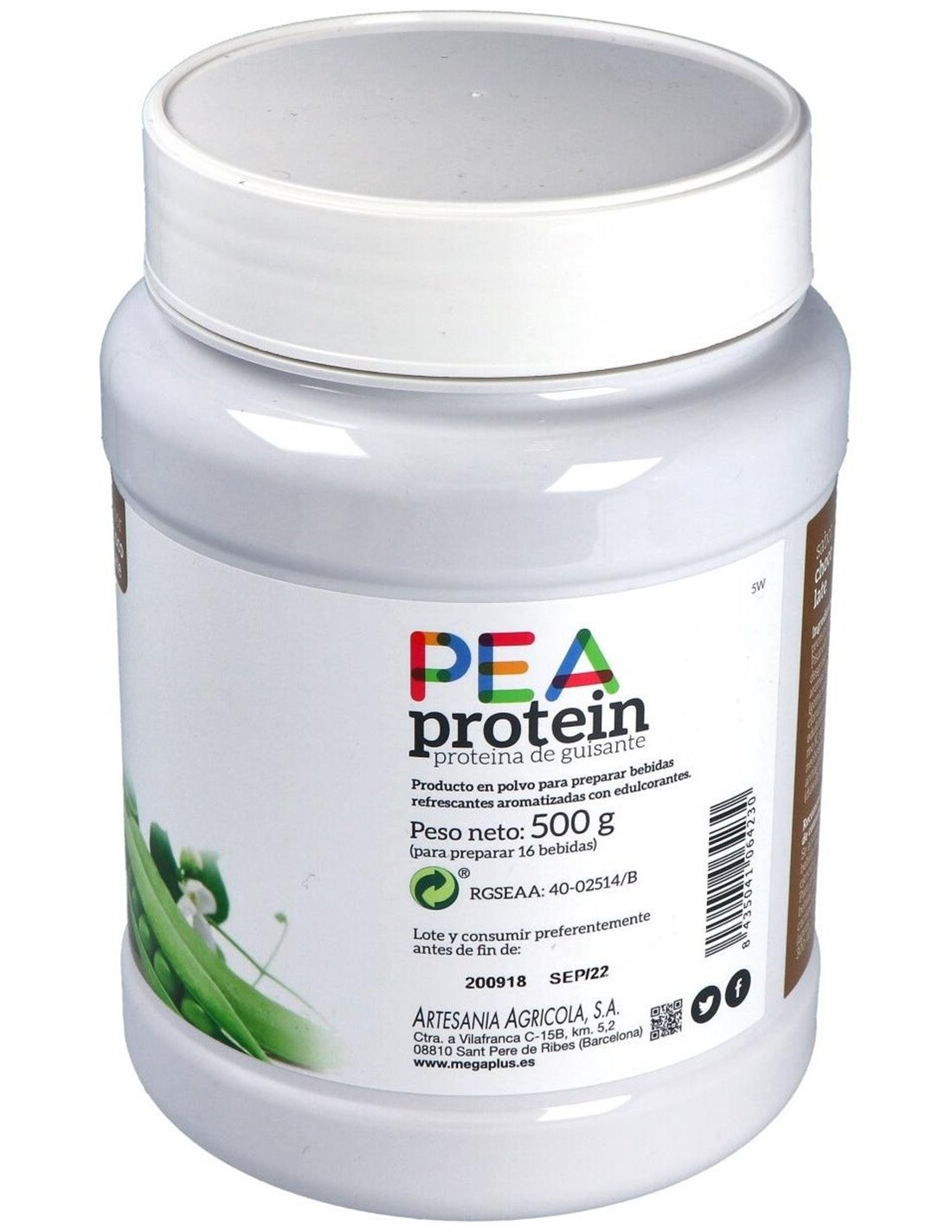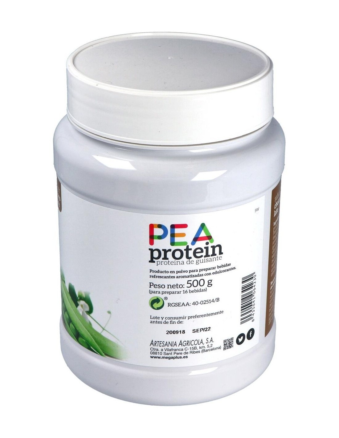 Pea Protein Proteina De Guisante Chocolate 500Gr. de Mega Plus
