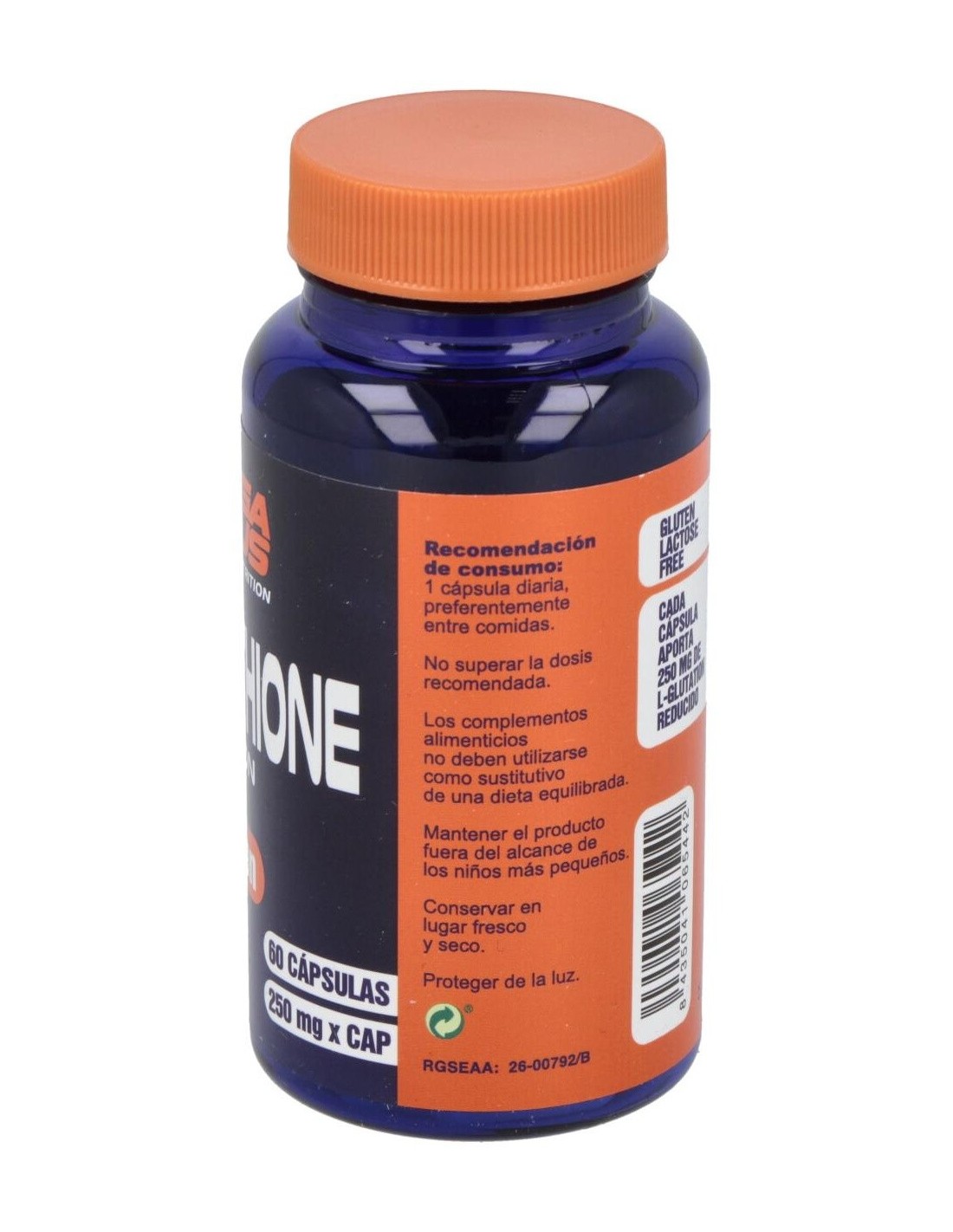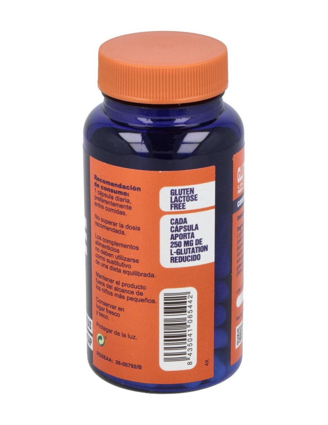 L-Glutation Reducido, Estabilizador (Celulosa Microcristalina), Cápsula Vegetal [Espesante (Hidroxipropilmetil Celulosa), Colorantes (Óxidos E Hidróxidos De Hierro)], Emulgente (Sales Magnésicas De Ácidos Grasos), Antiaglomerante (Dióxido De Silicio).