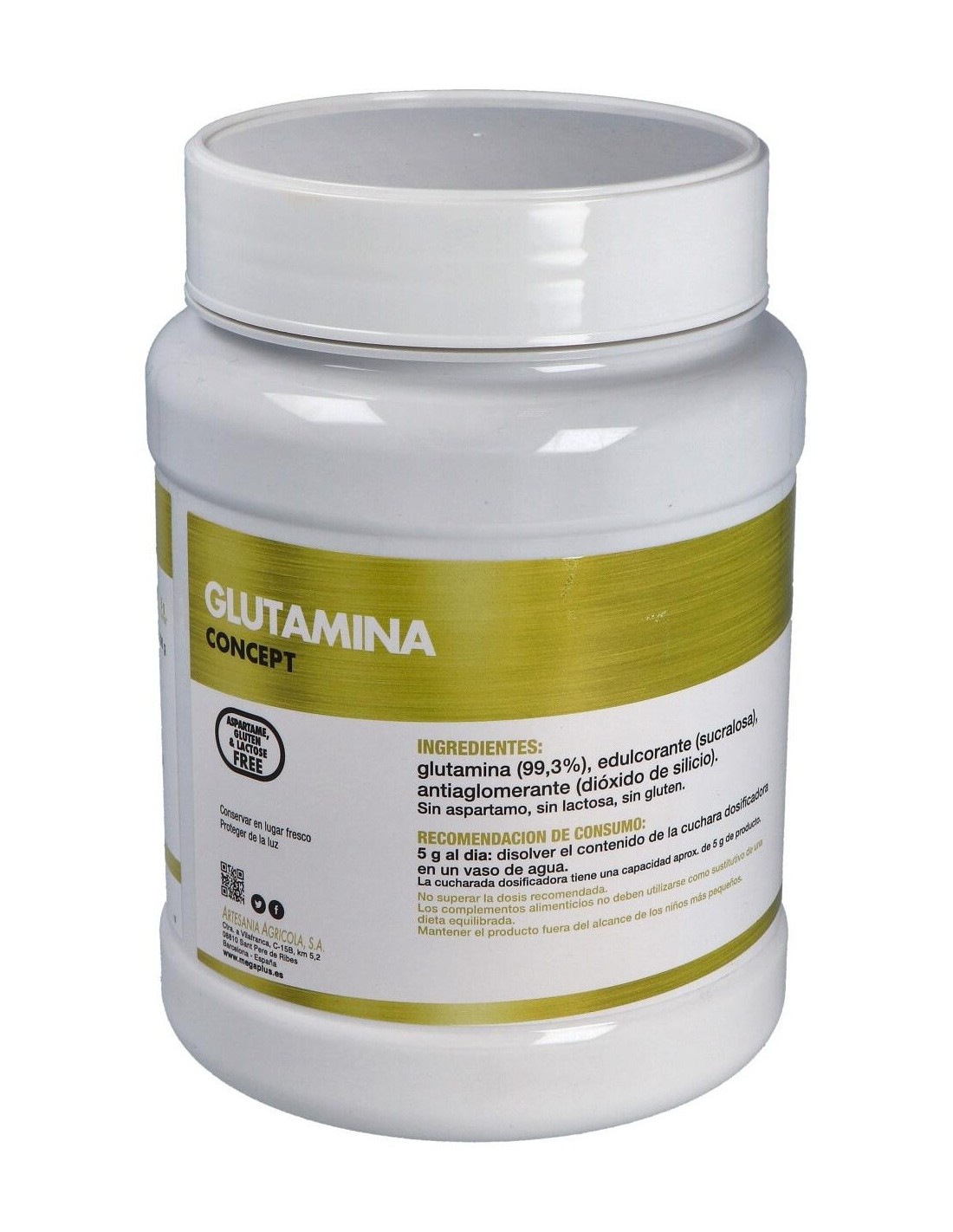 MEGA PLUSFavorece la síntesis proteica y previene el catabolismo muscular en situaciones de estrés oxidativo. GLUTAMINA CONCEPT 500gr.