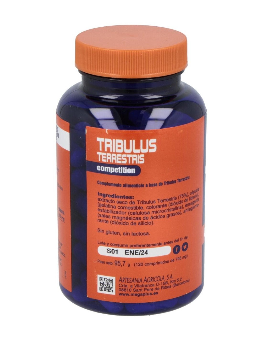 Extracto seco de Tribulus terrestris, cápsula [gelatina comestible, colorante (dióxido de titanio)], estabilizador (celulosa microcristalina, emulgente (sales magnésicas de ácidos grasos), antiaglomerante (dióxido de silicio).