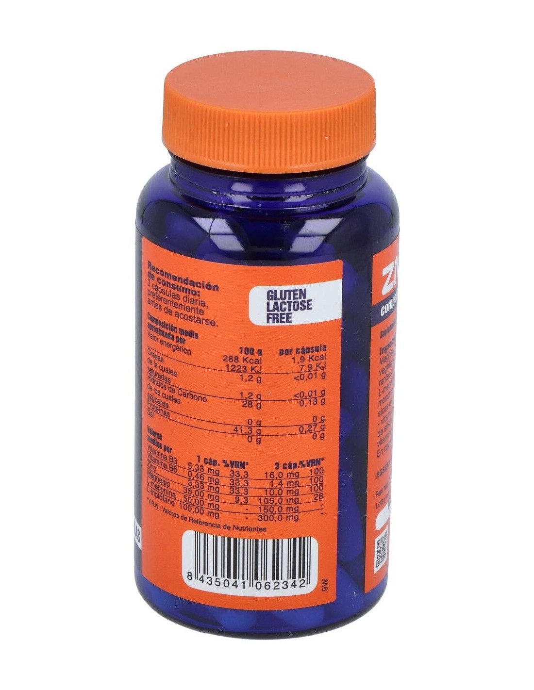 Magnesio, Zinc, Vitamina B6, L-Metionina, Vitamina B3, L-Triptófano, Maltodextrina, Óxidos De Hierro, Sales magnésicas de ácidos grasos, Cápsula vegetal, Hidróxidos de hierro, Zinc sulfato , Magnesio fosfato tribásico.