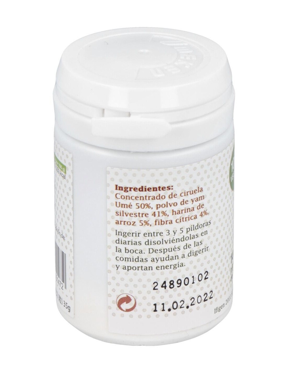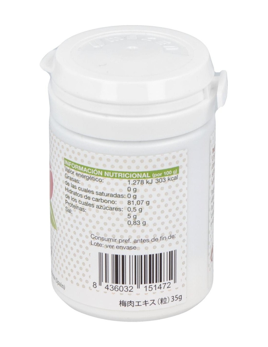 Concentrado de ciruela Umé 50%, polvo de yam silvestre 41%, harina de arroz 5%, fibra cítrica 4%.