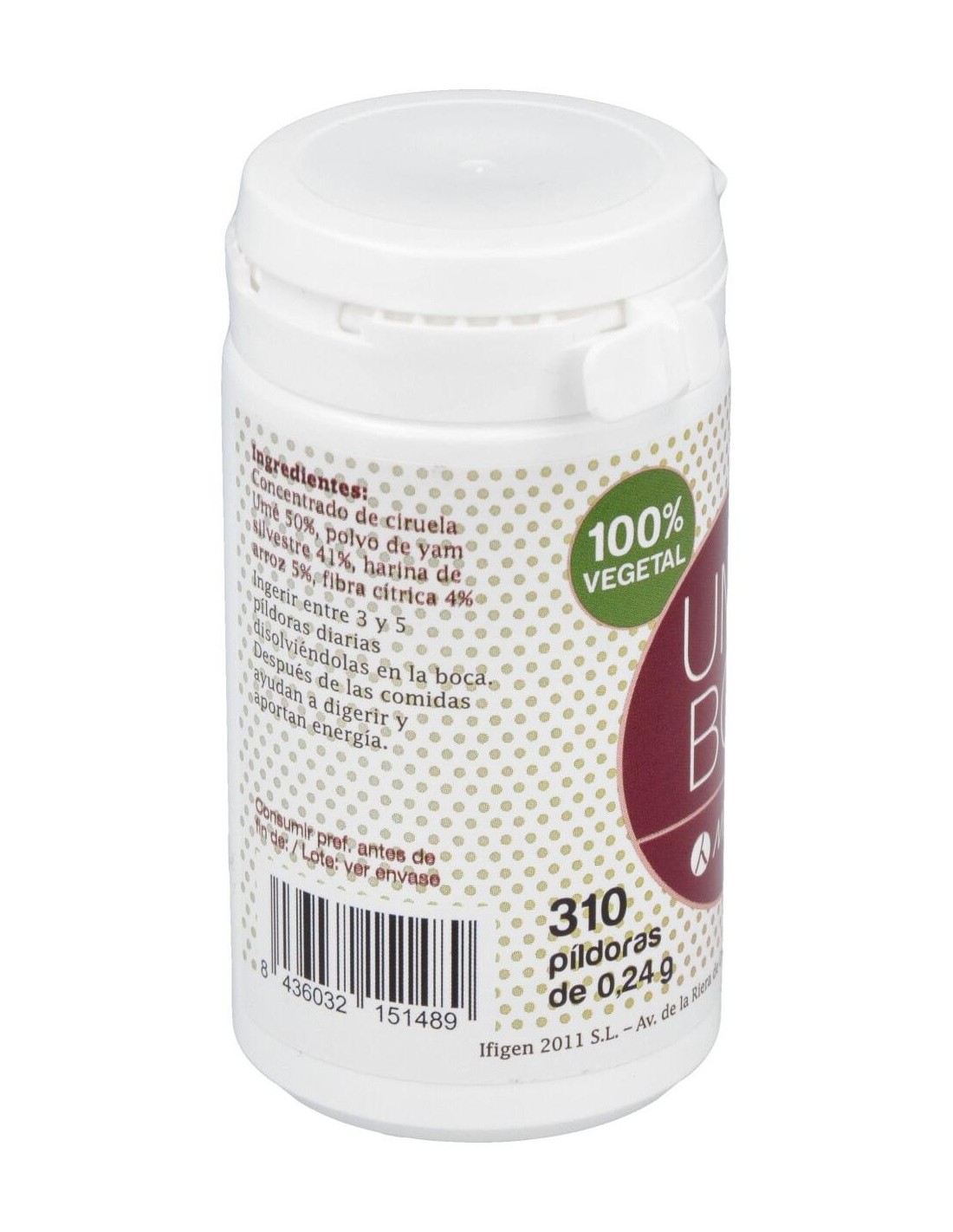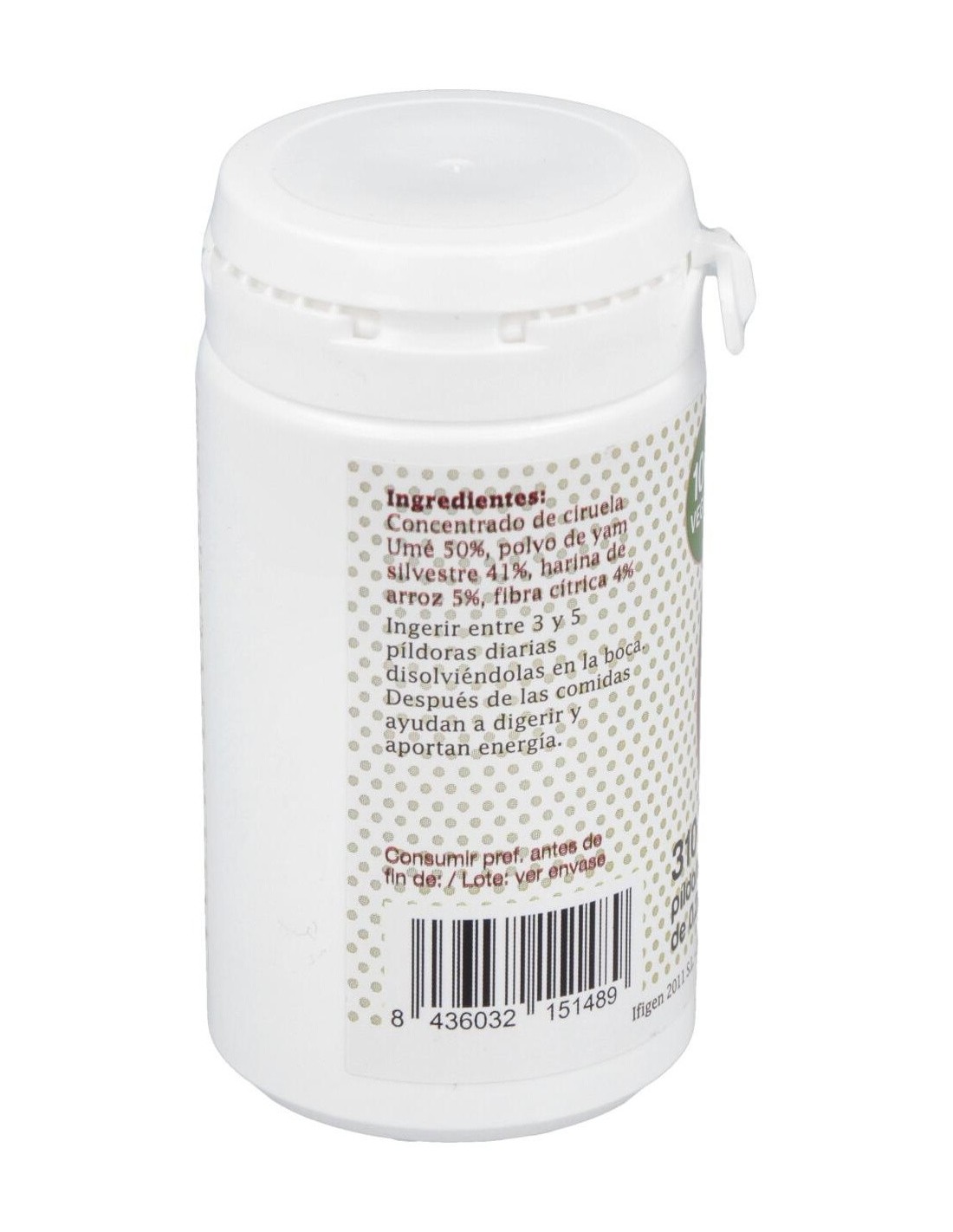 Umerol elaborado una combinación de extracto de ciruela umé y jinenjo, una patata salvaje. Favorecen una buena digestión y ayudan a prevenir el estreñimiento. Las ciruelas contienen ácido cítrico, fósforo, potasio, magnesio, calcio y mucho hierro. El jinenjo se utiliza en la tradición japonesa para revitalizar el corazón. Incluye enzimas digestivas amilasa y colina, que ayudan a alcalinizar la sangre y limpiar el intestino. Formato en comprimidos, contiene 310 comprimidos. Elaborado con ingredientes procedentes de agricultura ecológica.