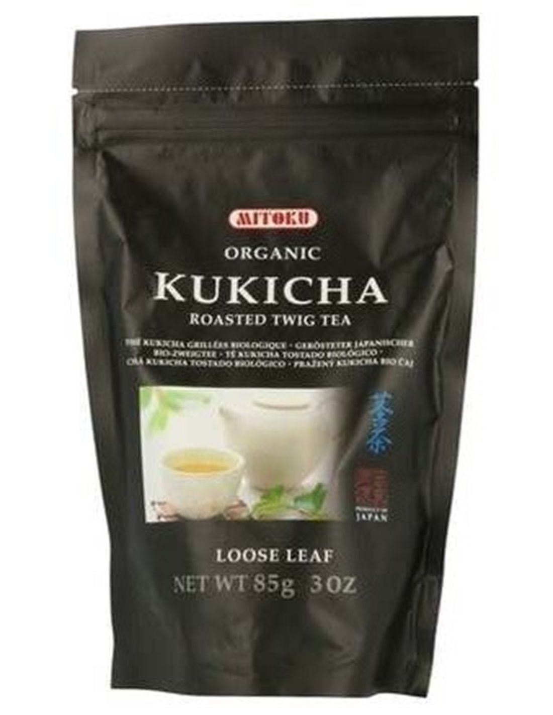 MITOKUTe orgánico de Kukicha de origen japonés. Es idóneo para niños y ancianos, ya que prácticamente no contiene teína, esto es debido a que contiene solamente ramas del té Bancha y han de permanecer al menos tres años en la planta, por lo que pierde prácticamente toda la teína, pero ha absorbido los nutrientes.