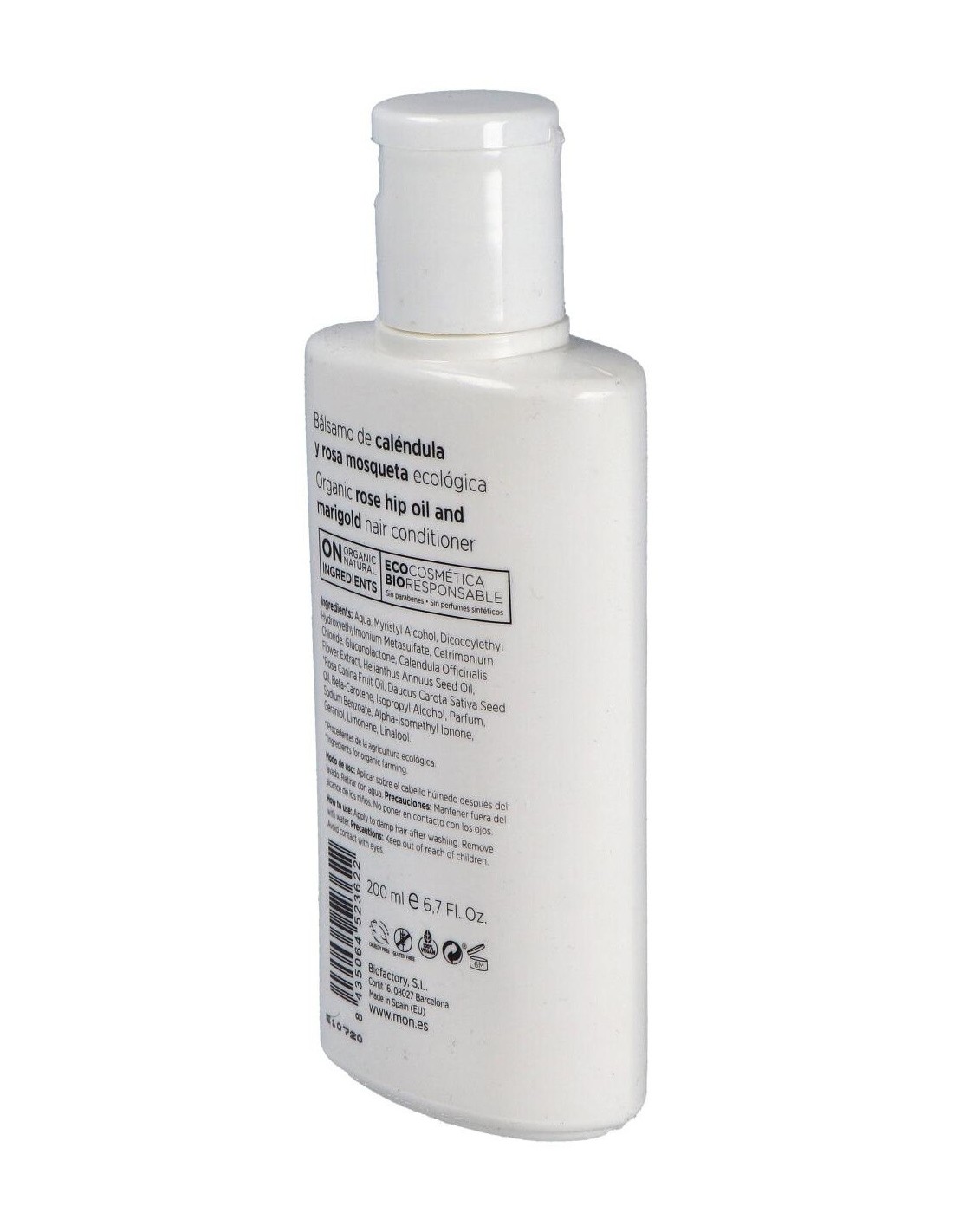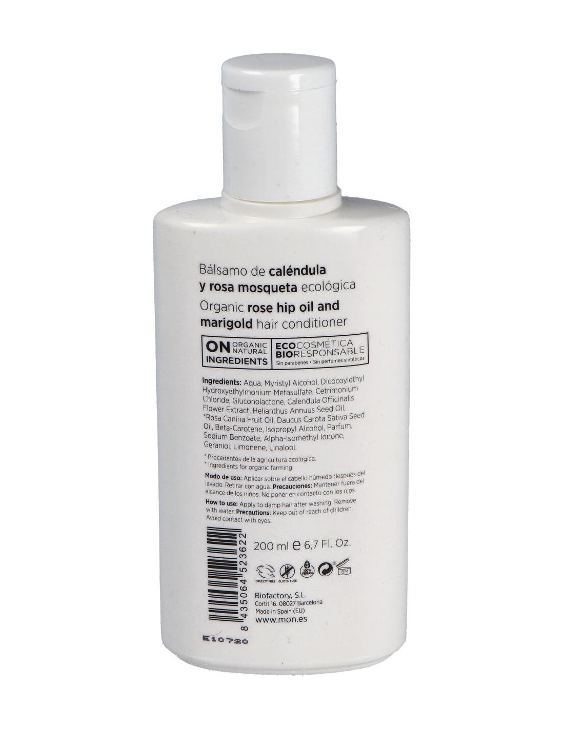 Bálsamo acondicionador para el cabello especialmente recomendado para cabellos secos y castigados. Su fórmula a base de extractos de plantas de cultivo ecológico contribuye a lucir un pelo sano y brillante. El extracto de rosa mosqueta ayuda a reparar, renovar e hidratar el cabello. Su ingrediente de caléndula, conocida por sus efectos curativos, ayuda a calmar irritaciones y enrojecimientos y alivia picores y eccemas.