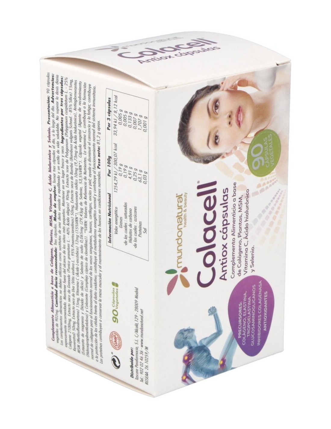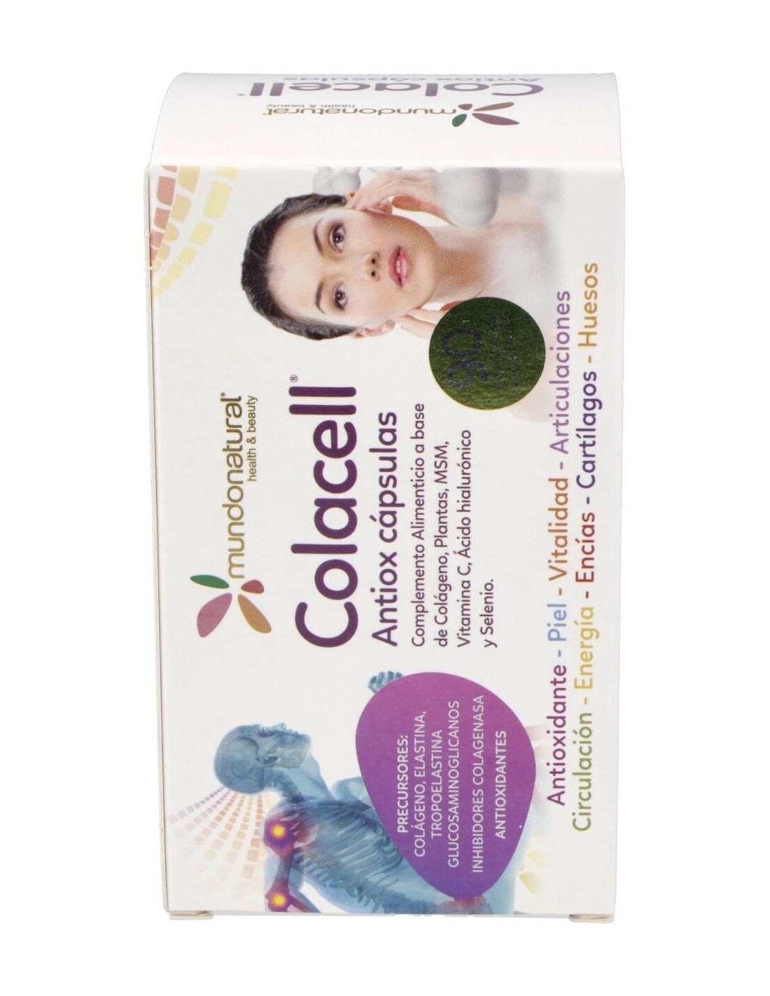 Colacell® es un complemento alimenticio que contribuye a retardar los procesos de deterioro de la piel, al aportar péptidos bioactivos de colágeno tipo I, resveratrol de distintas fuentes y silicio organico.
