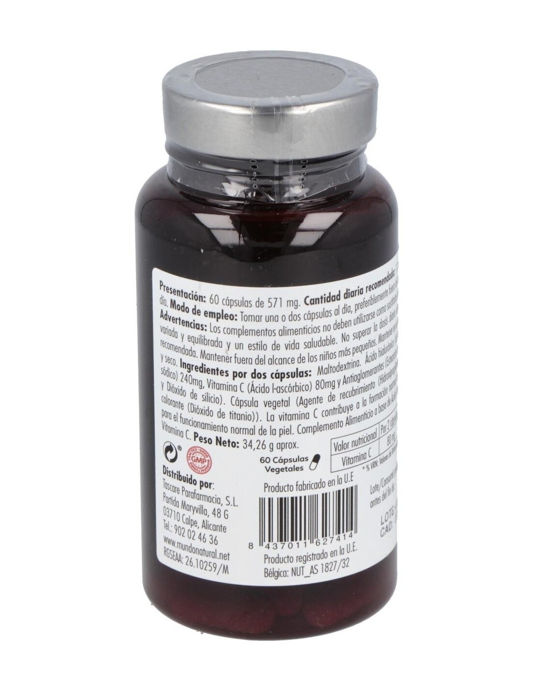 VITAMINA C (ÁCIDO L-ASCÓRBICO): 80 MG; AGENTE DE CARGA (MALTODEXTRINA); ANTIAGLOMERANTES (ESTEARATO DE MAGNESIO Y DIÓXIDO DE SILICIO); CÁPSULA (GELATINA Y COLORANTE (E-171)).