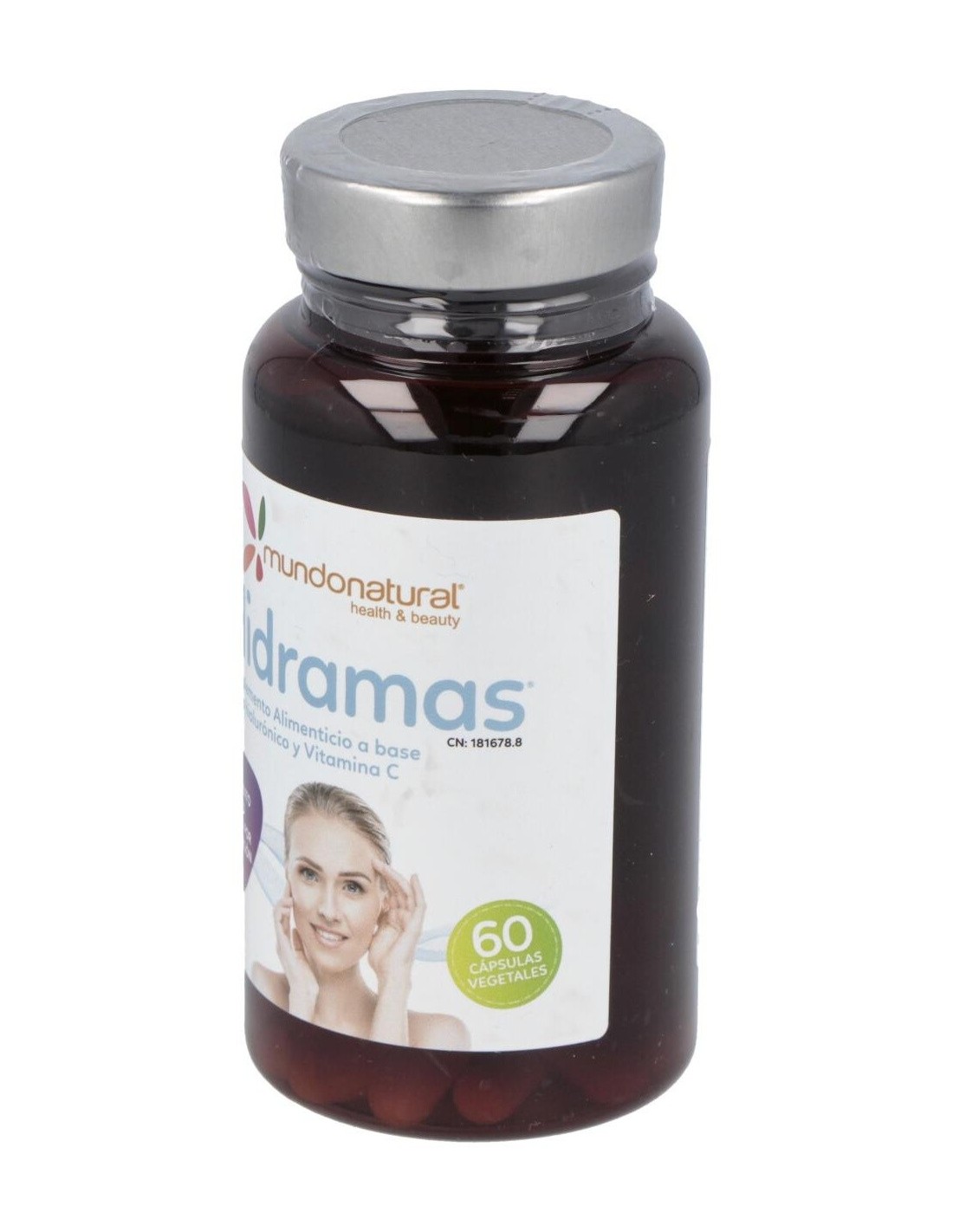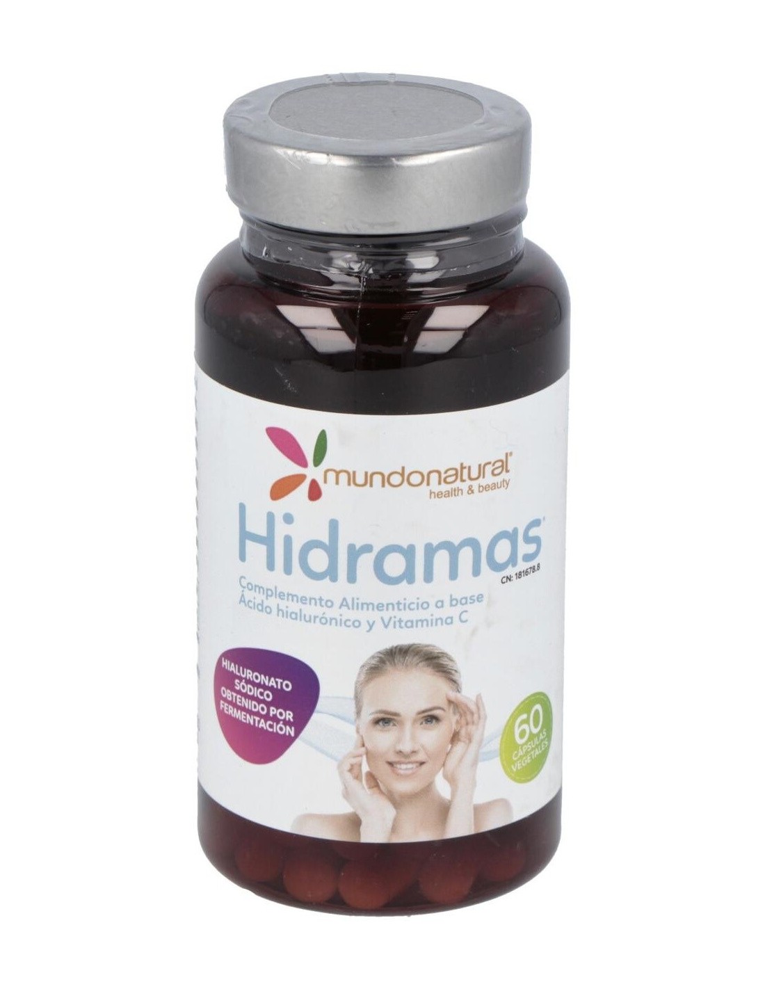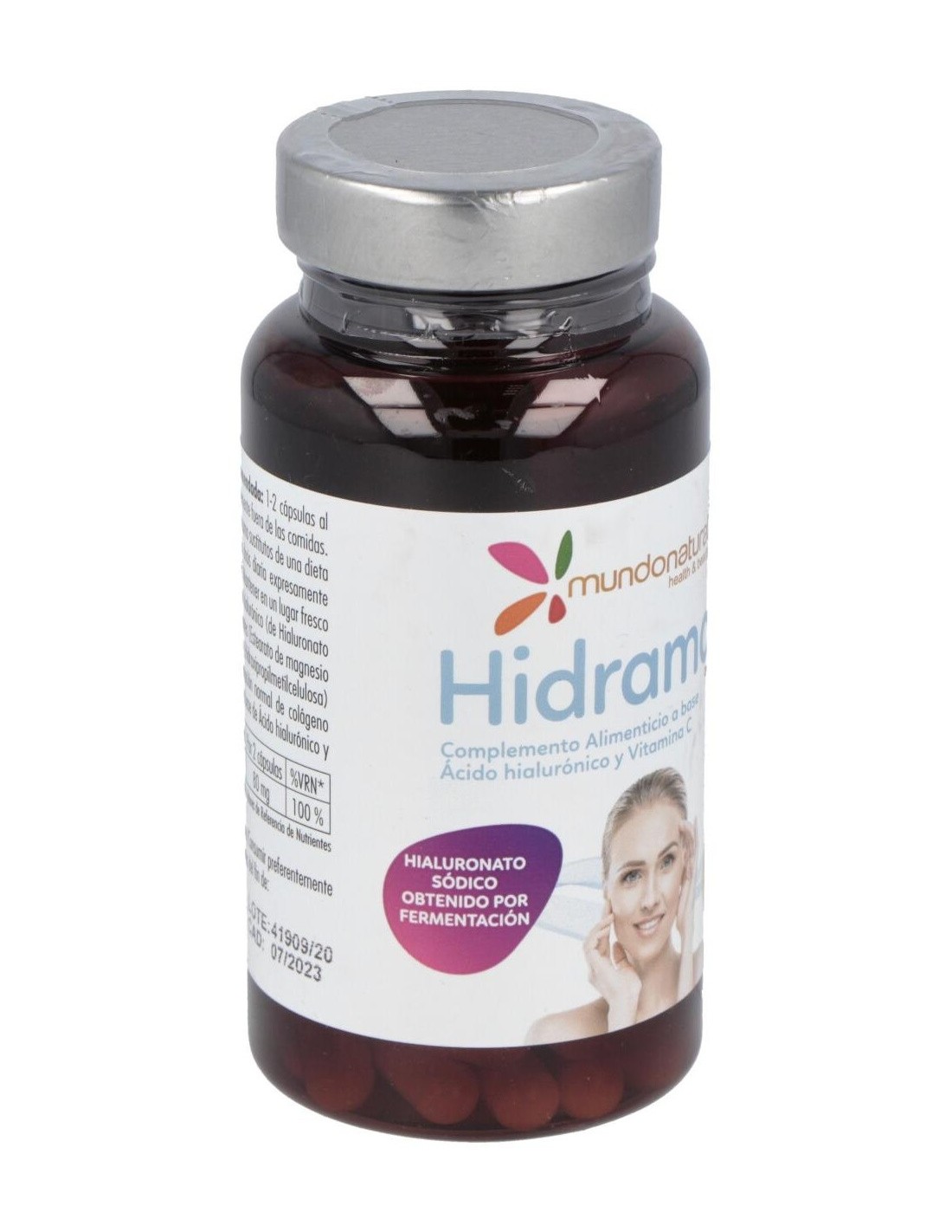 Mundo Natural Hidramas Acido Hialuronico 60 Cap es un complemento alimenticio elaborado a base de ácido hialurónico. Este, junto al colágeno, colabora en la pérdida de volumen y arrugas producidas por el paso del tiempo, ya que favorece la retención de líquidos y nutrientes en el mantenimiento de la piel y articulaciones.