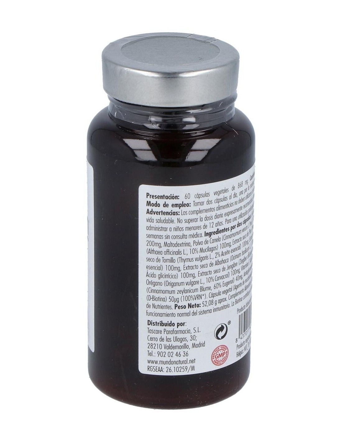 Tomillo (Thymus vulgaris L.): 100 mg