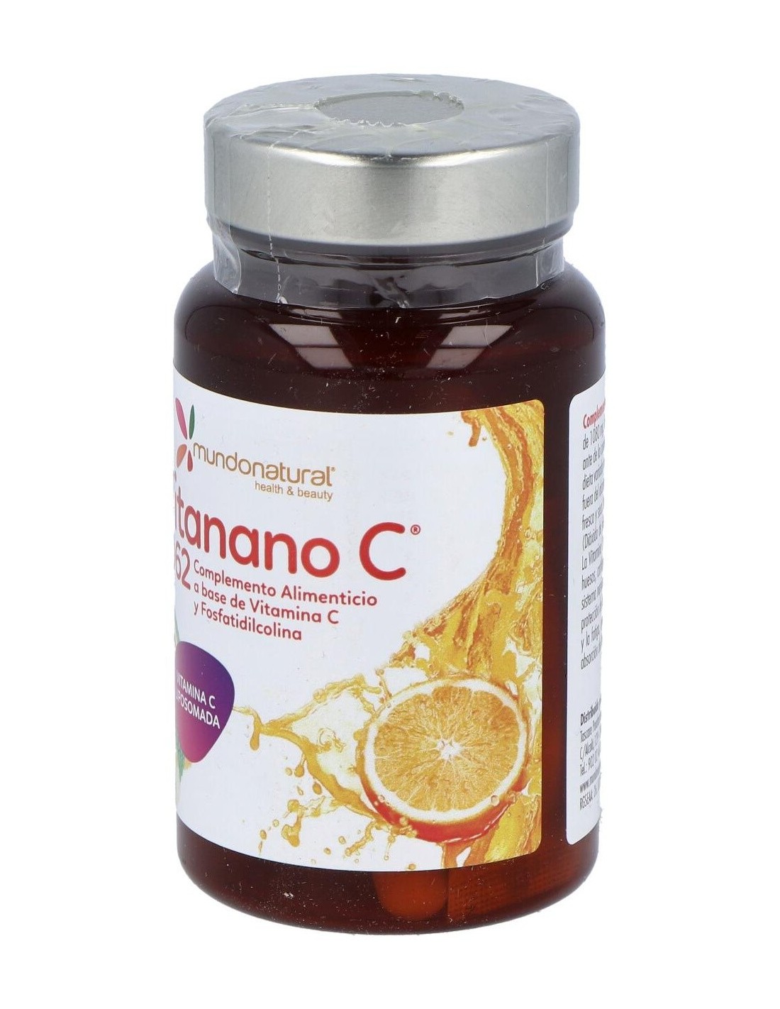 MUNDONATURALComplemento alimenticio formulado a base de vitamina C y fosfatidicolina. Se trata de una sustancia de alta biodisponibilidad y fácil absorción orgánica.