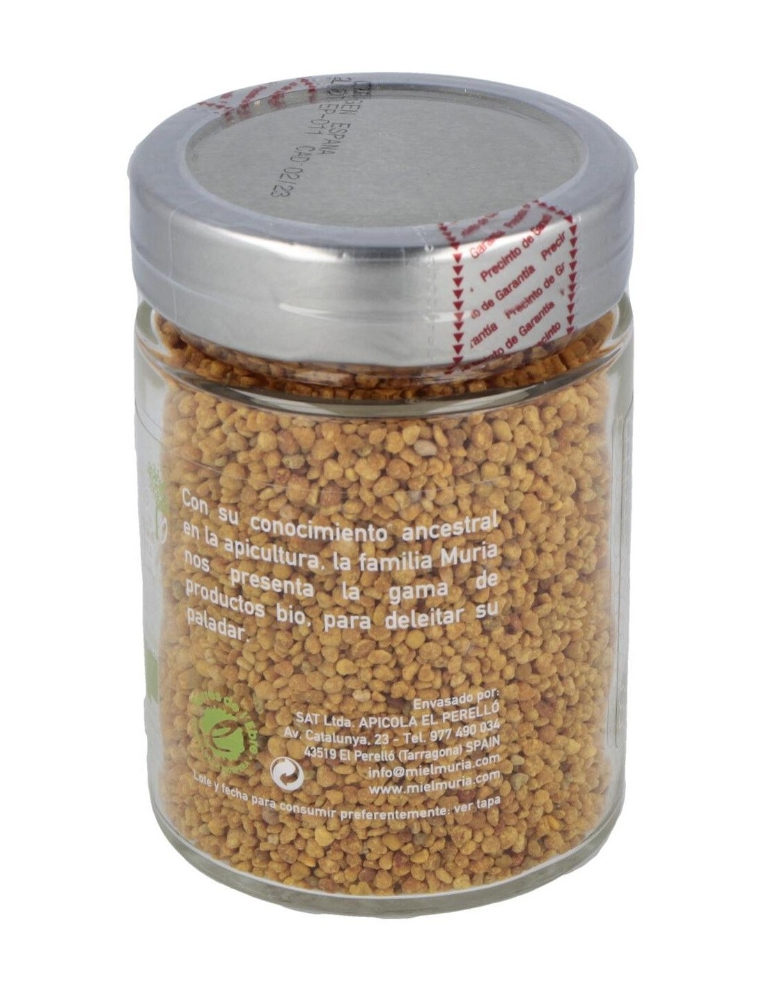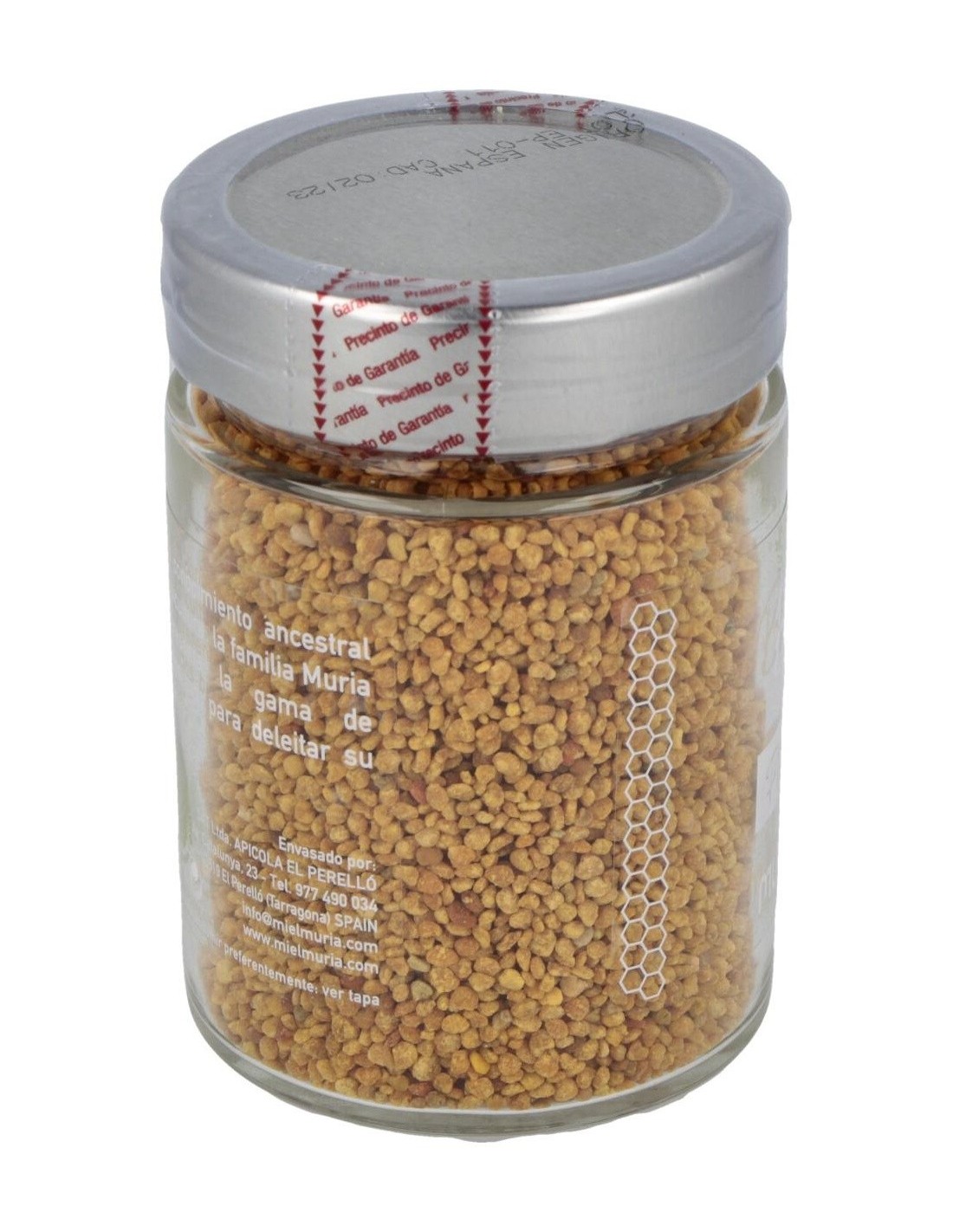 Bote de polen de abejas con un agradable aroma floral y terroso, que se puede usar directamente en recetas, o bien para maceración en líquidos fríos o tibios azucarados durante 15 minutos, para ser usado como ingrediente en la elaboración de recetas de cocina, preparados alimenticios o para realizar remedios caseros y cosméticos. Se recomienda conservar a temperatura ambiente en un lugar fresco y seco, lejos de fuentes de calor y evitar el contacto directo de la luz solar.