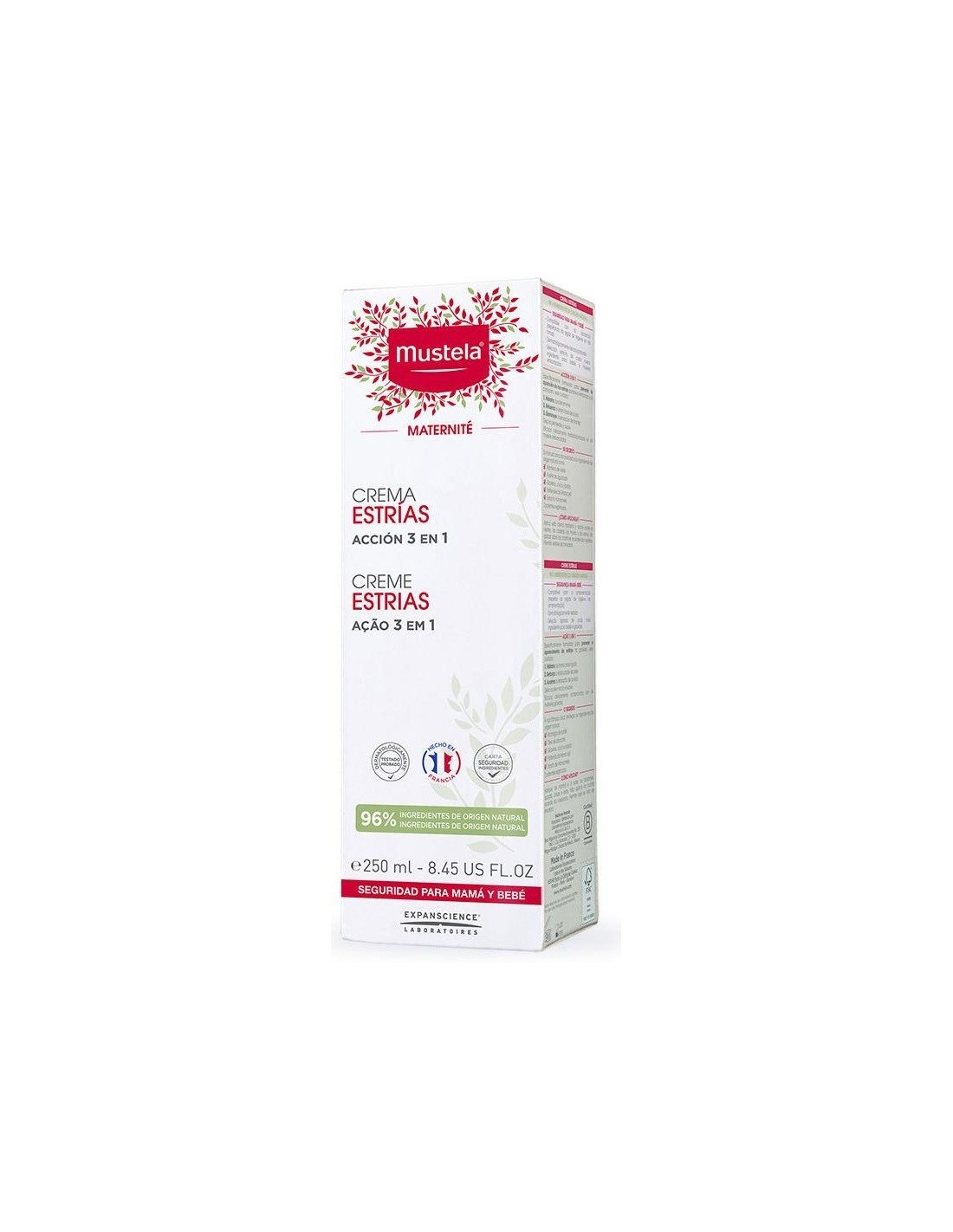 MUSTELAHidrata y alivia las sensaciones de tirantez. Su ingrediente clave se extrae del aceite de maracuyá y se ha seleccionado específicamente para mejorar la elasticidad y preservar la flexibilidad de la piel de las mujeres embarazadas. Especialmente formulada para prevenir la aparición de estrías durante todo el embarazo.